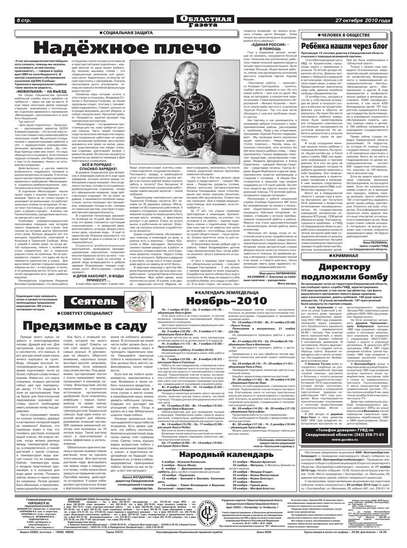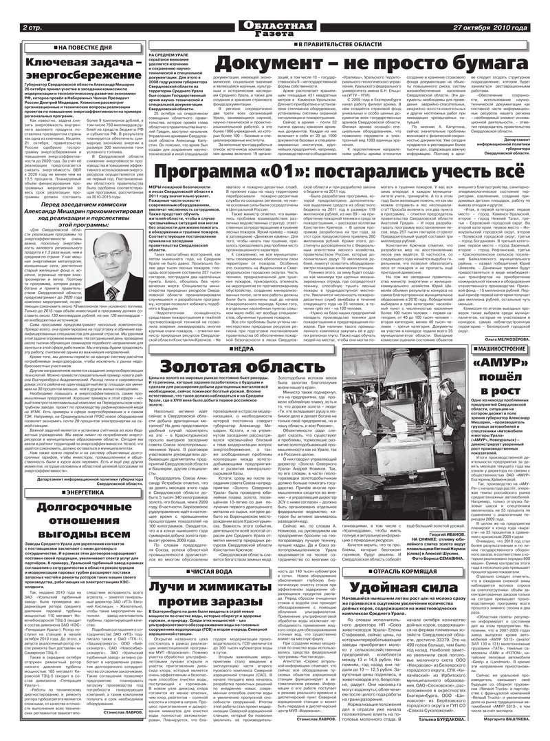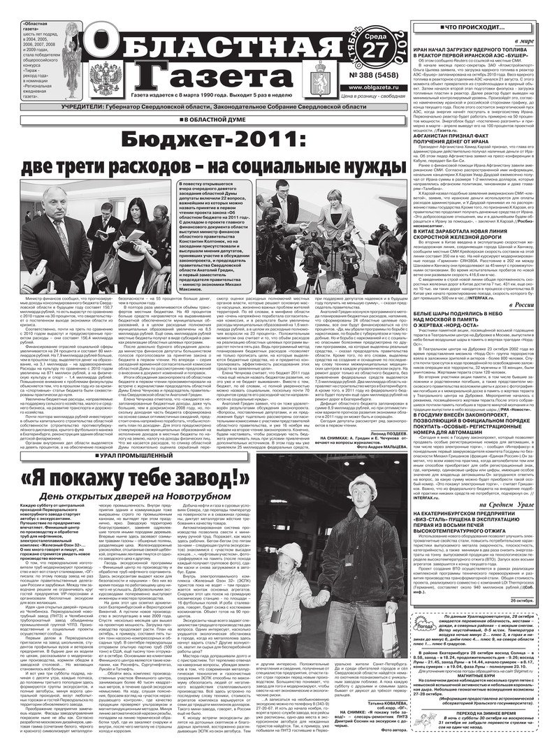 «Областная газета» № 388 (5458) от 27 октября 2010 года