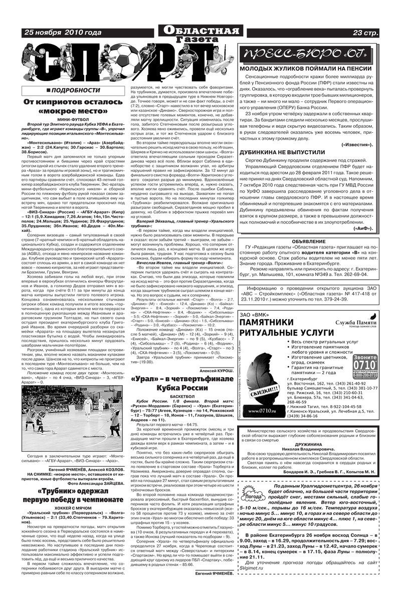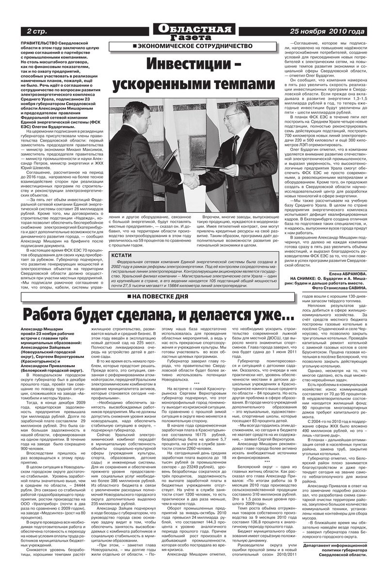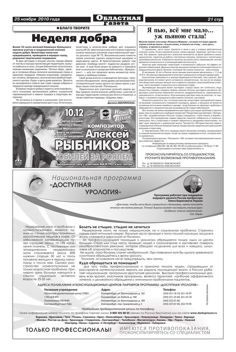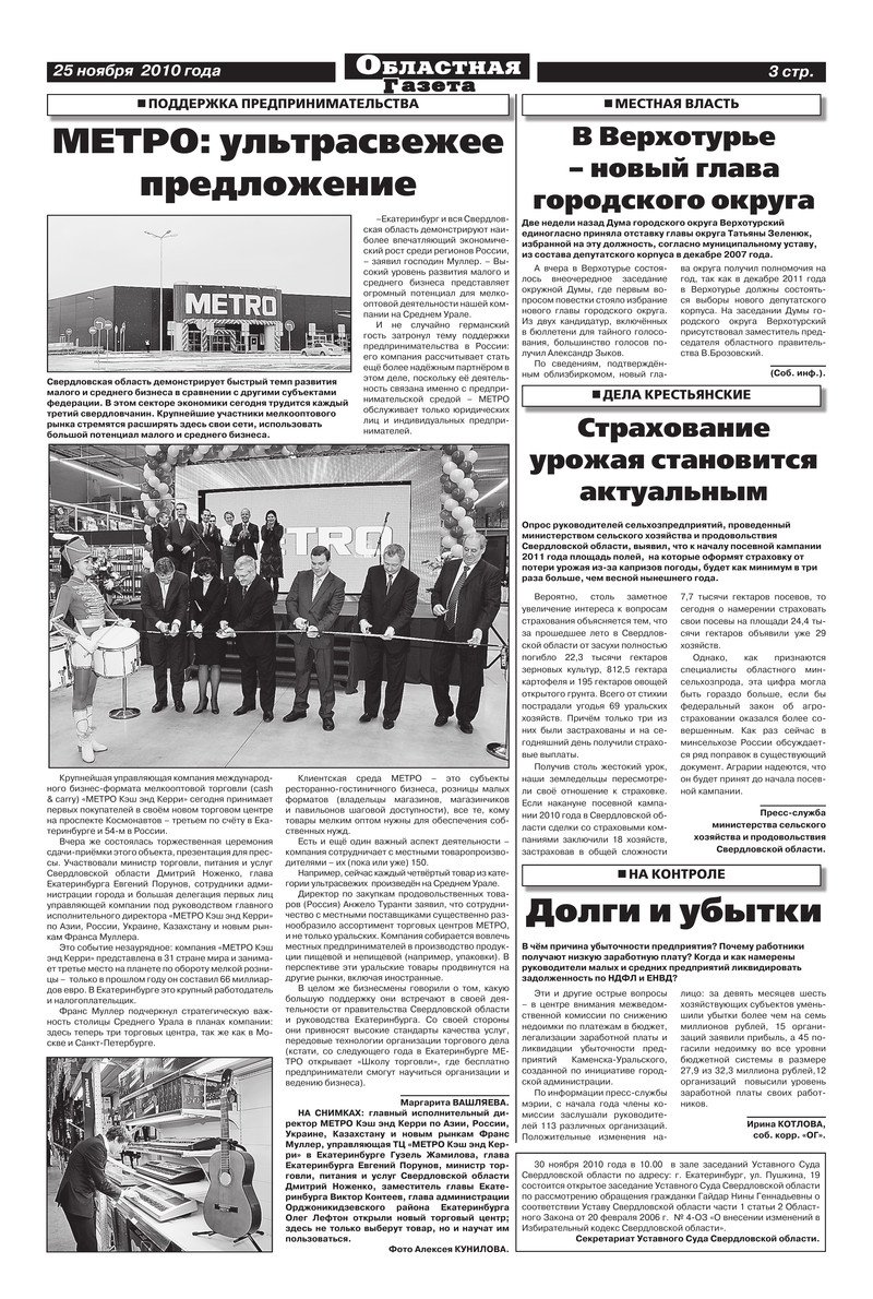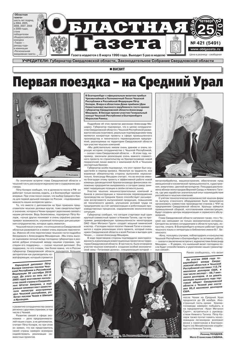«Областная газета» № 421 (5491) от 25 ноября 2010 года