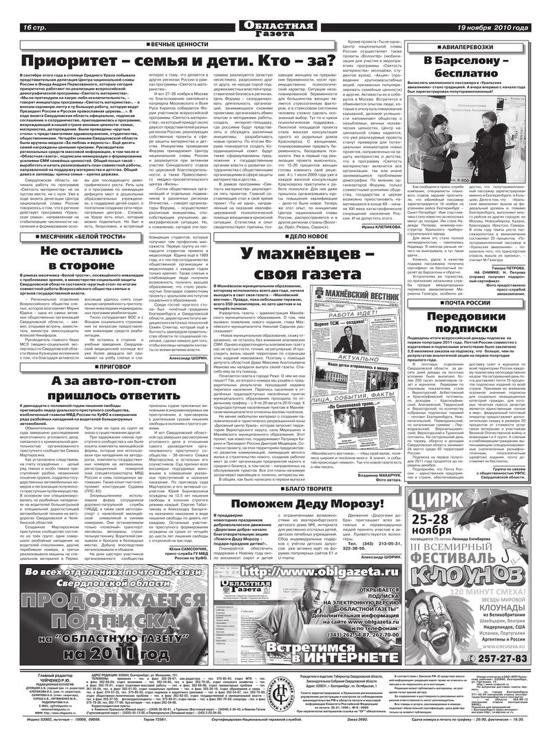 «Областная газета» № 412–413 (5482–5483) от 19 ноября 2010 года
