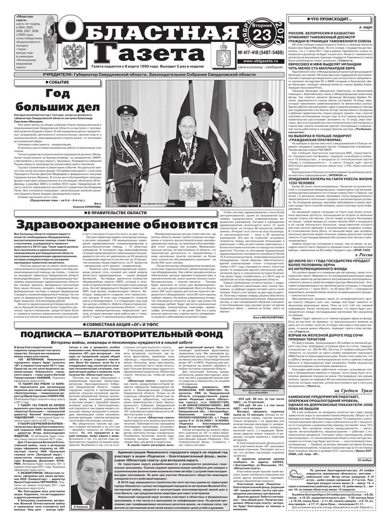 «Областная газета» № 417–418 (5487–5488) от 23 ноября 2010 года