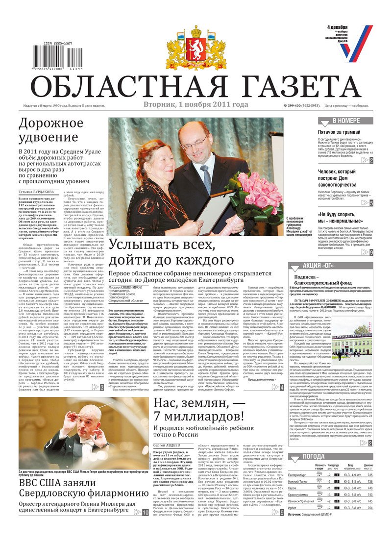 «Областная газета» № 399–400 (5952–5953) от 1 ноября 2011 года