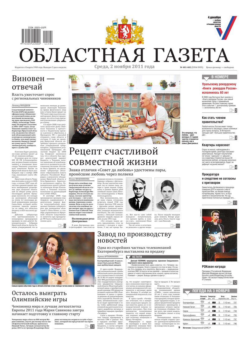 «Областная газета» № 401–402 (5954–5955) от 2 ноября 2011 года