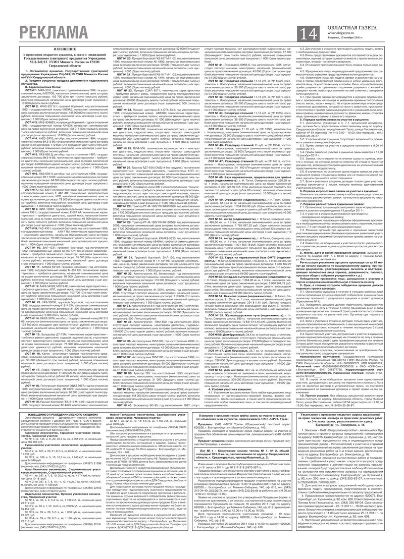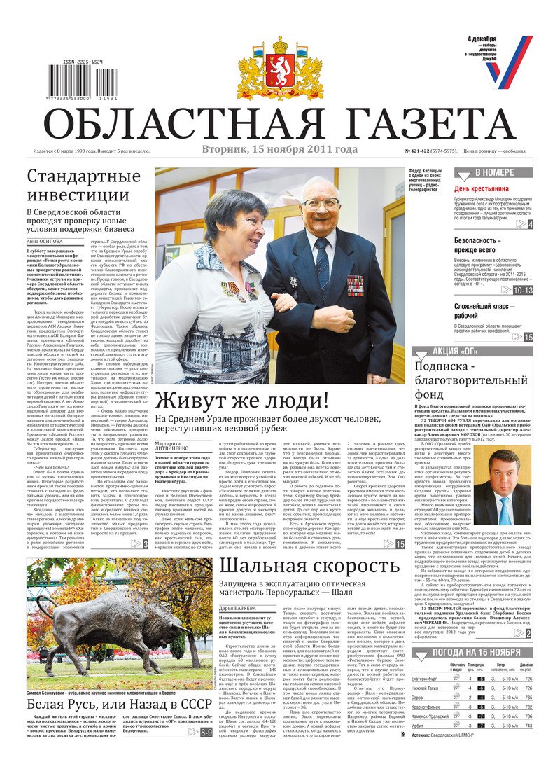«Областная газета» № 421 (422) от 15 ноября 2011 года