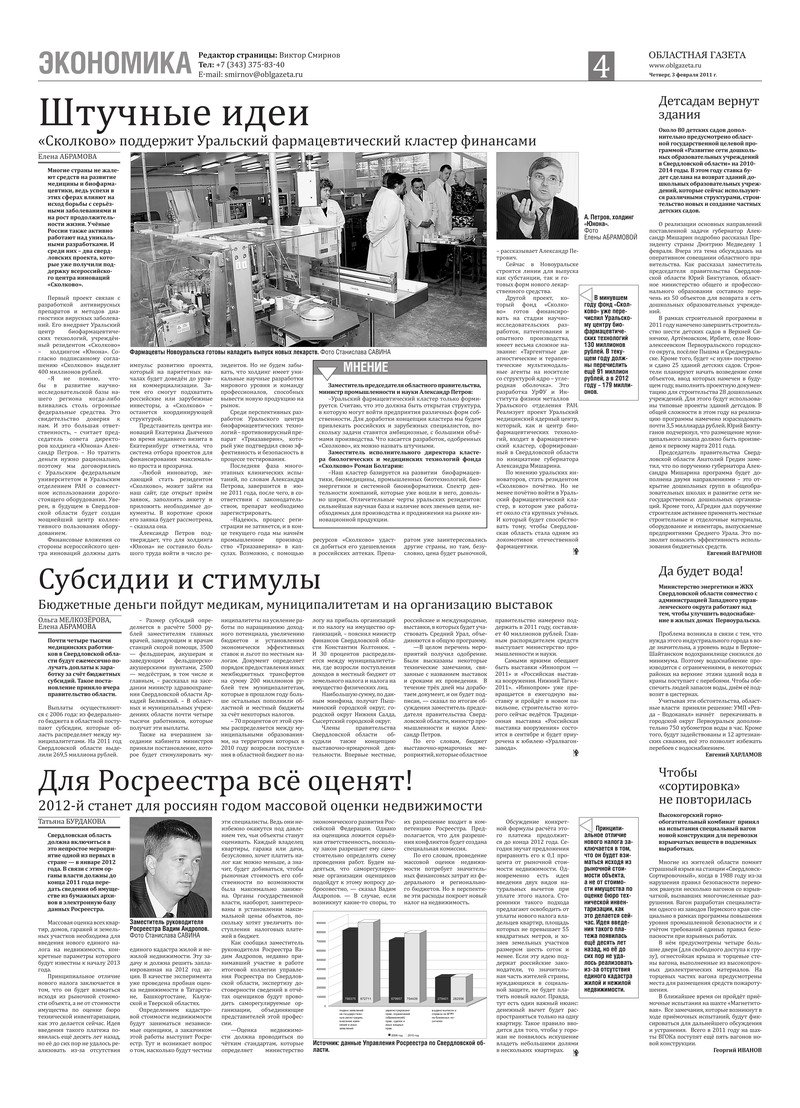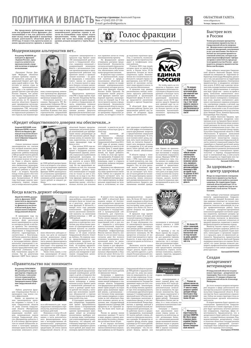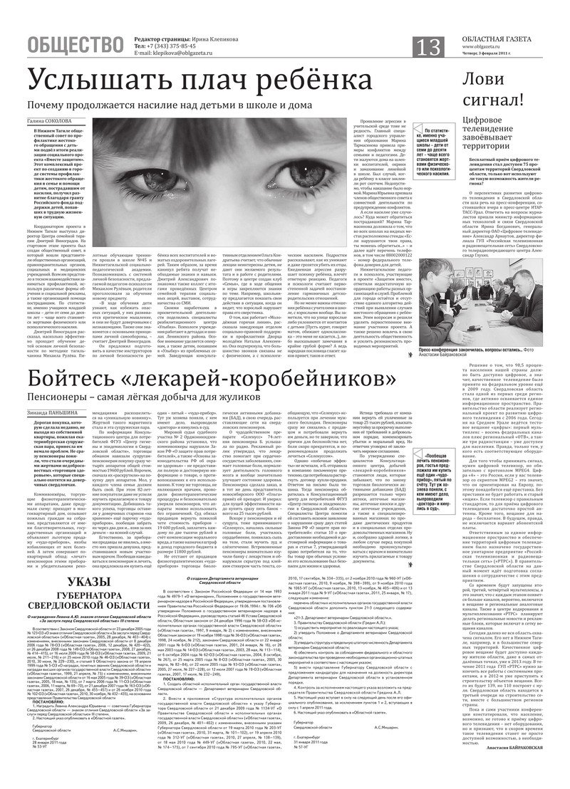 «Областная газета» № 30–31 (5583–5584) от 3 февраля 2011 года