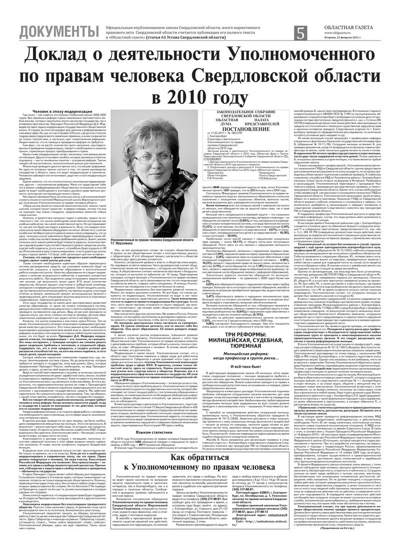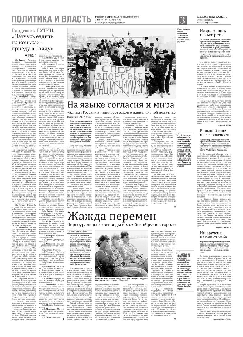 «Областная газета» № 52–54 (5605–5606) от 22 февраля 2011 года