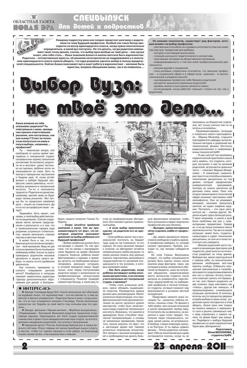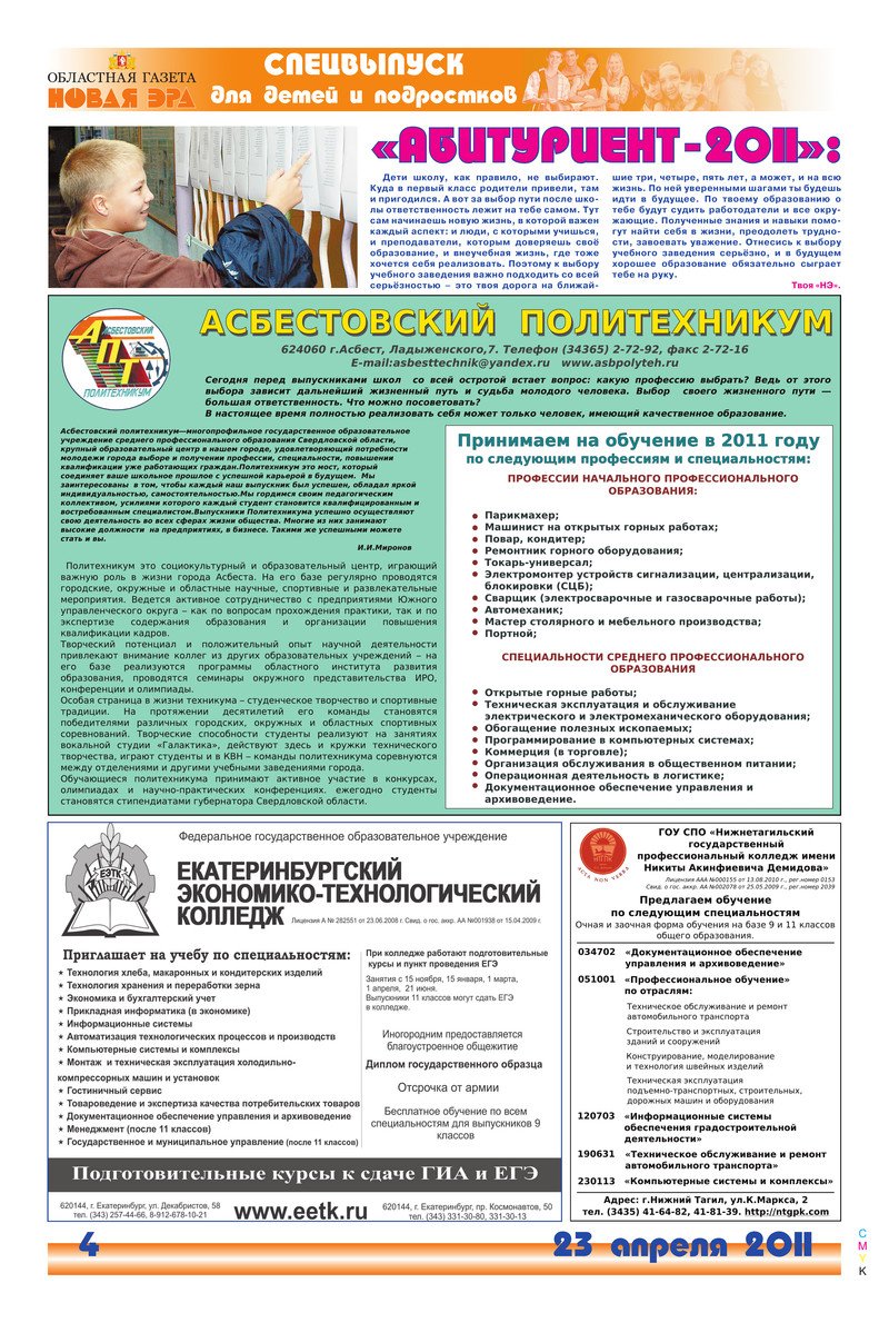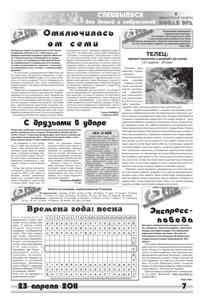 «Новая эра» № 134 (5687) от 23 апреля 2011 года