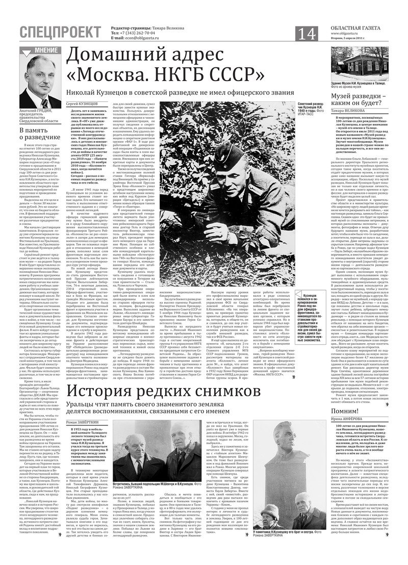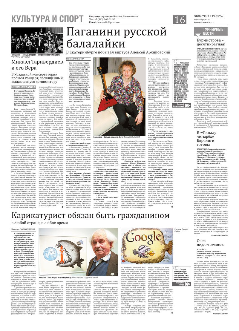 «Областная газета» № 107–108 (5660–5661) от 5 апреля 2011 года