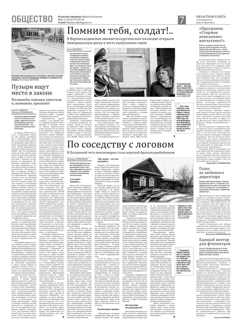 «Областная газета» № 138 (5691) от 27 апреля 2011 года