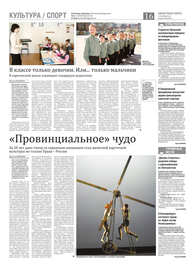«Областная газета» № 166–167 (5719–5720) от 19 мая 2011 года