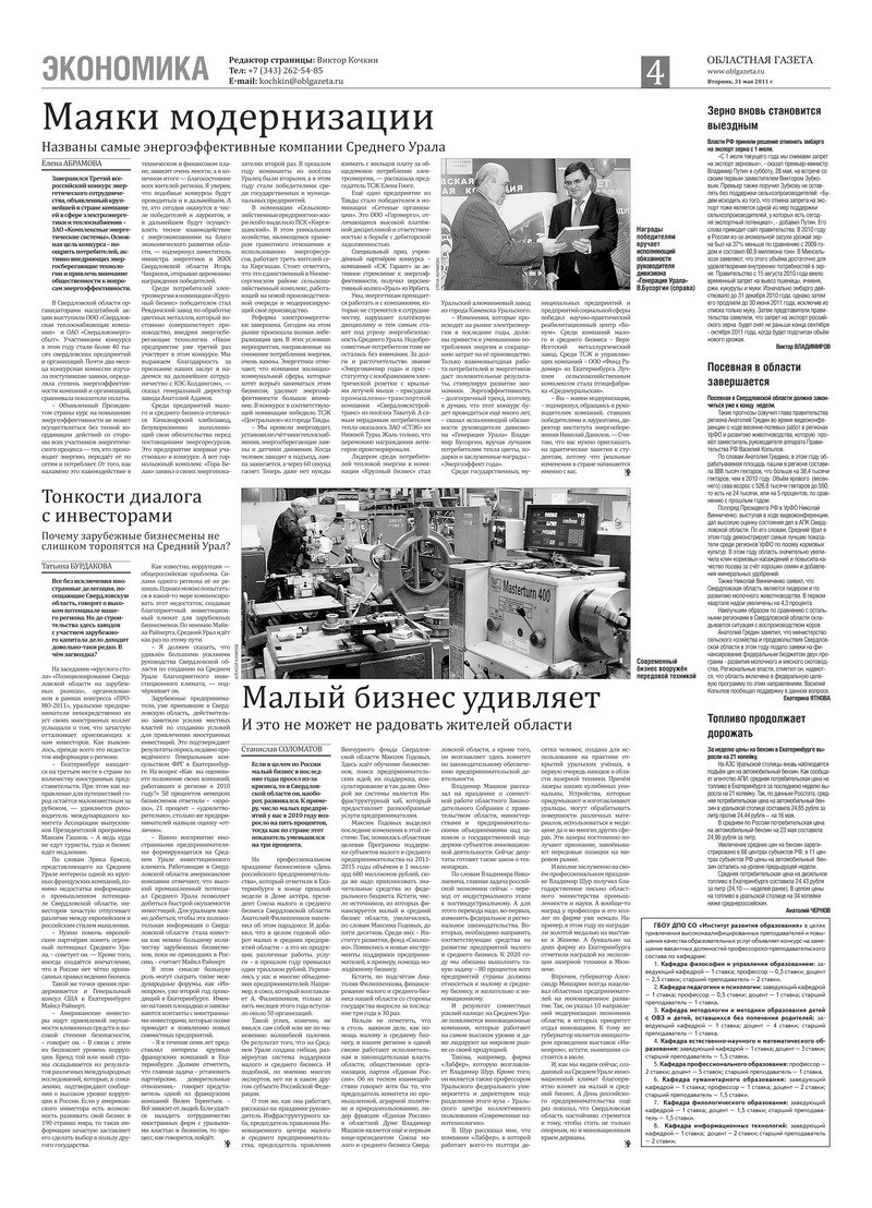 «Областная газета» № 184–185 (5737–5738) от 31 мая 2011 года