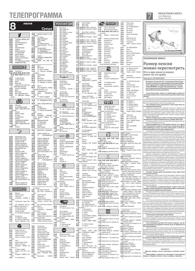 «Областная газета» № 187 (188) от 2 июня 2011 года