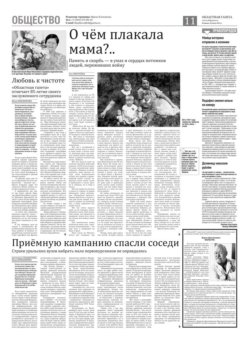 «Областная газета» № 270–271 (5823–5824) от 26 июля 2011 года