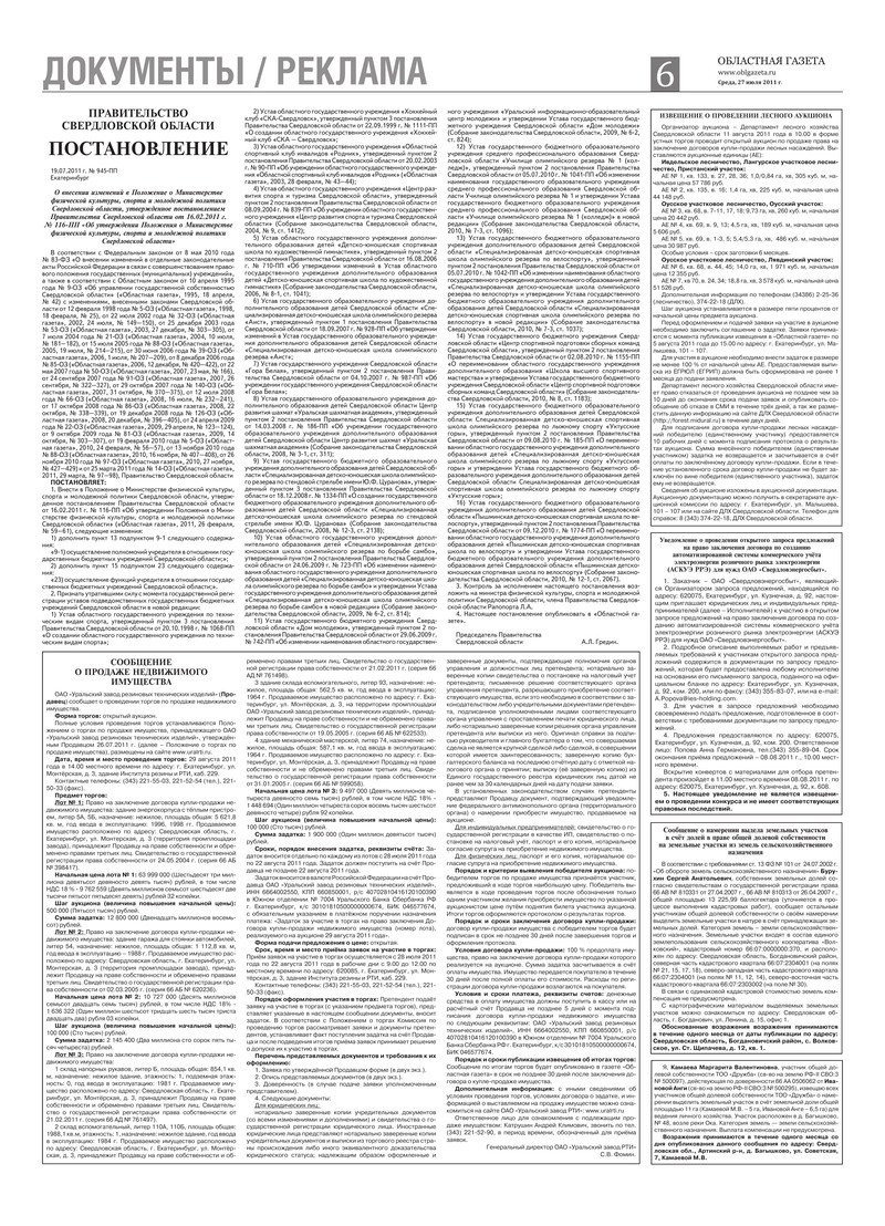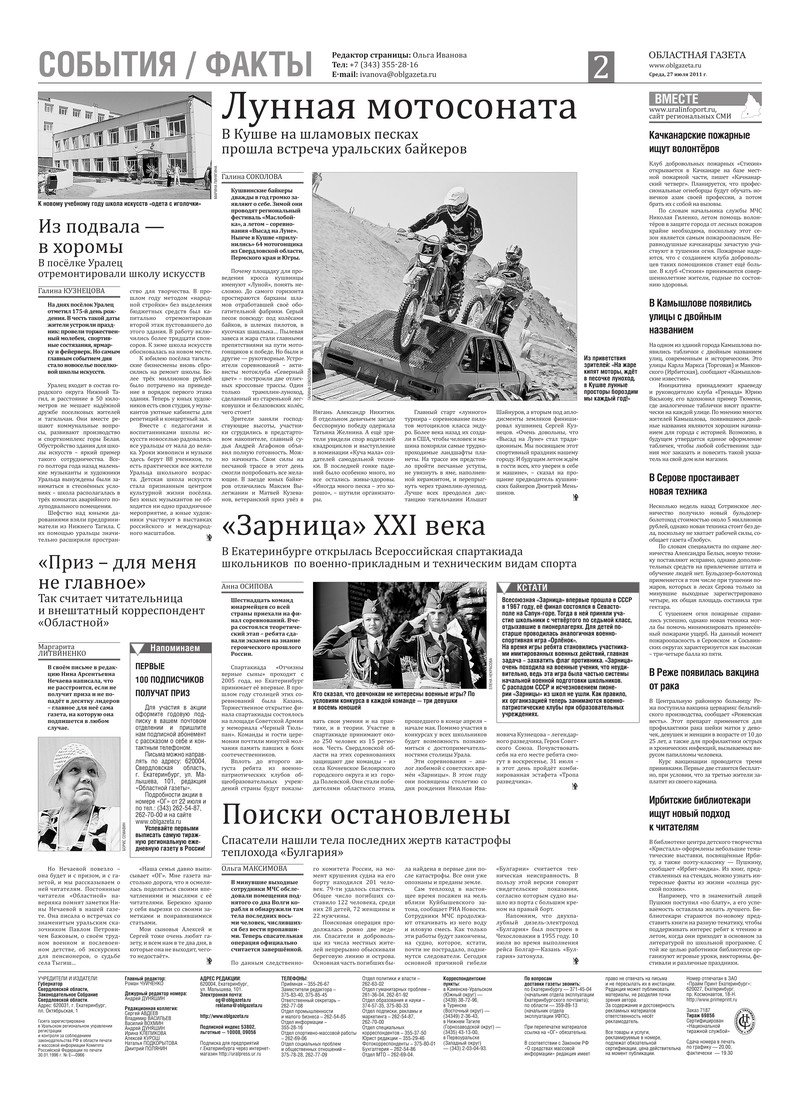 «Областная газета» № 272 (5825) от 27 июля 2011 года