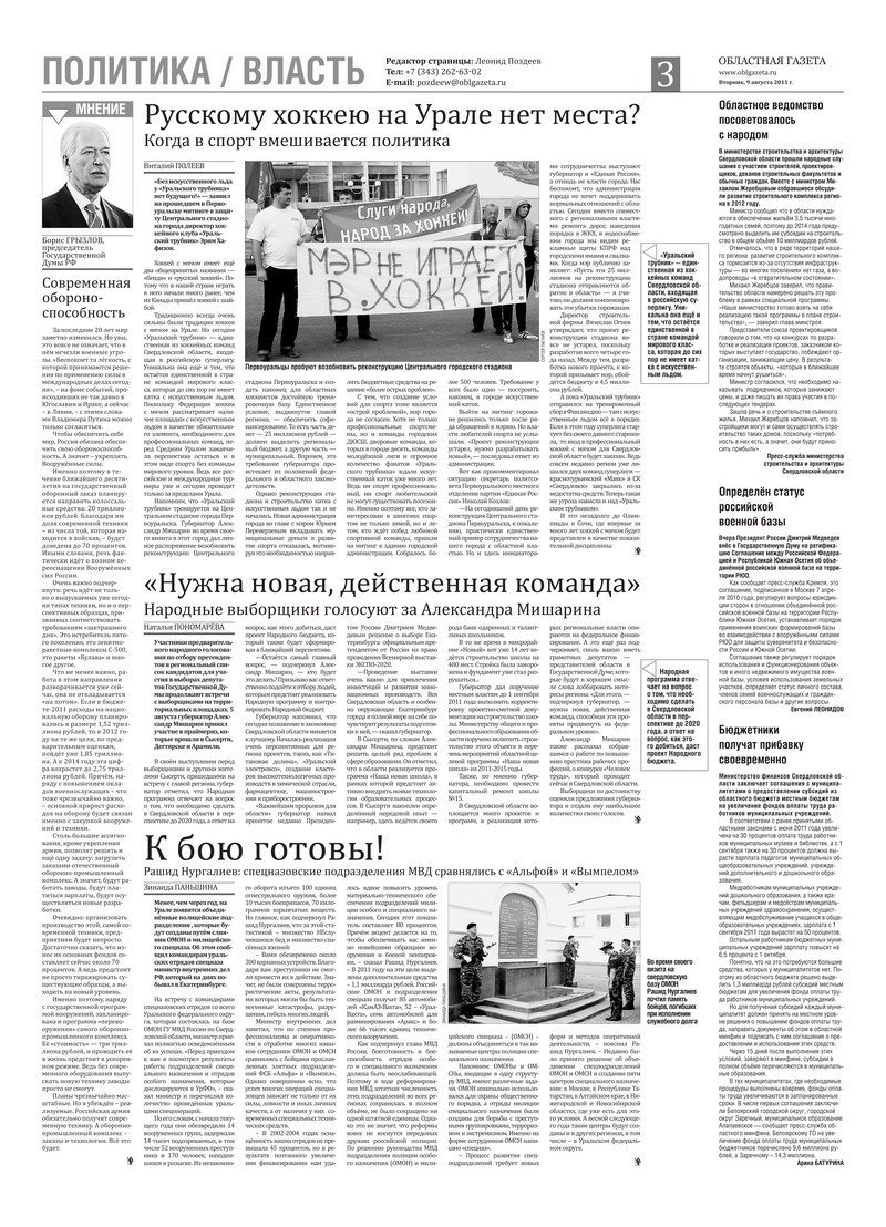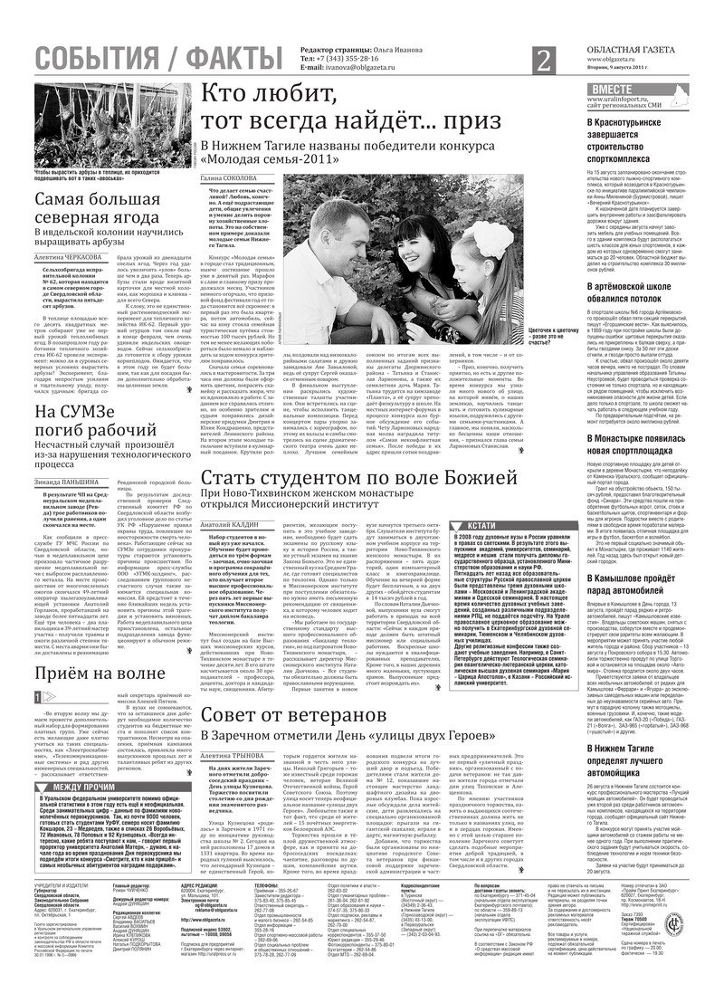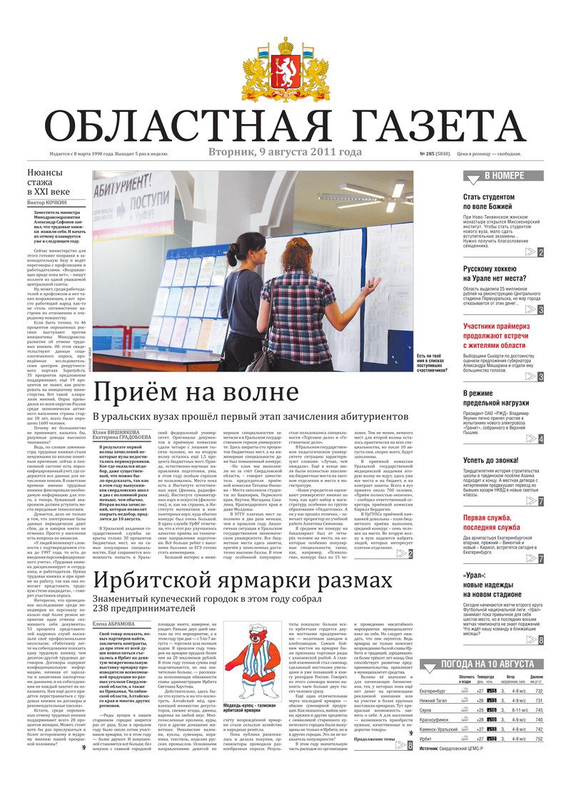 «Областная газета» № 285 (5838) от 9 августа 2011 года