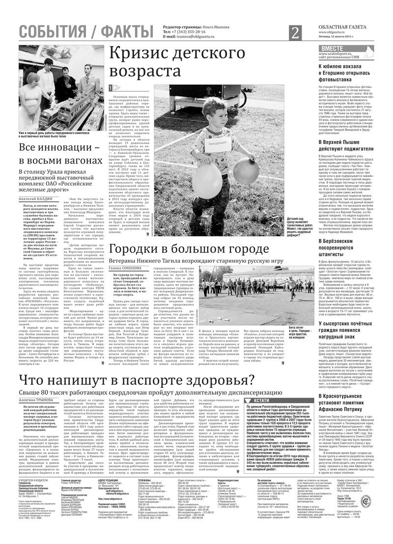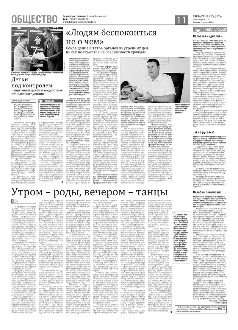 «Областная газета» № 290–291 (5843–5844) от 12 августа 2011 года