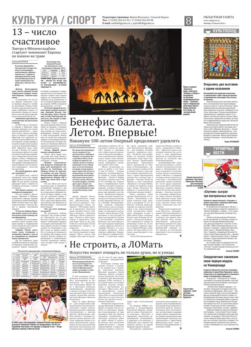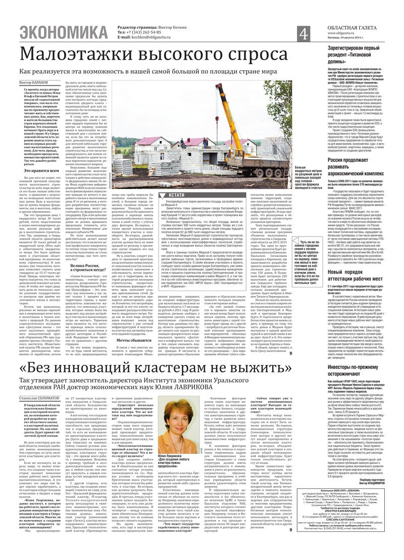 «Областная газета» № 304 (5857) от 19 августа 2011 года