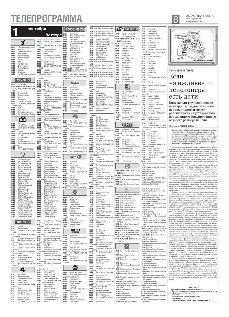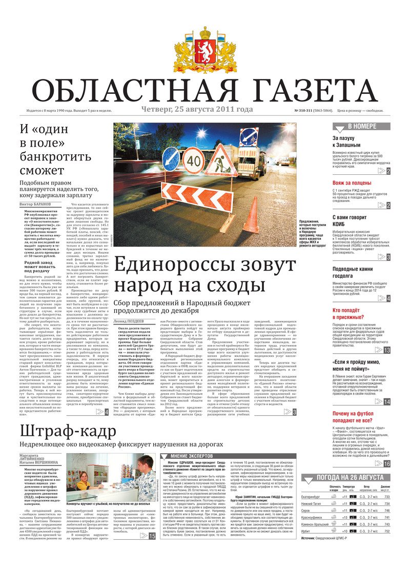 «Областная газета» № 310–311 (5863–5864) от 25 августа 2011 года