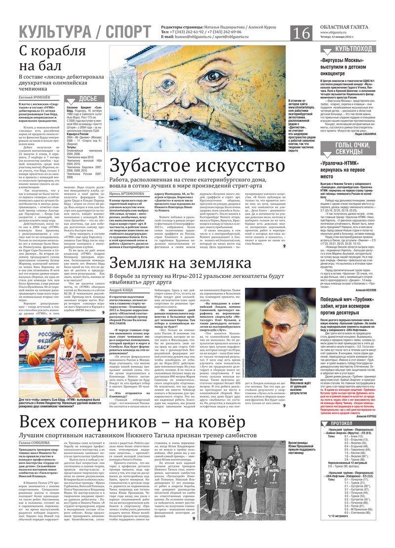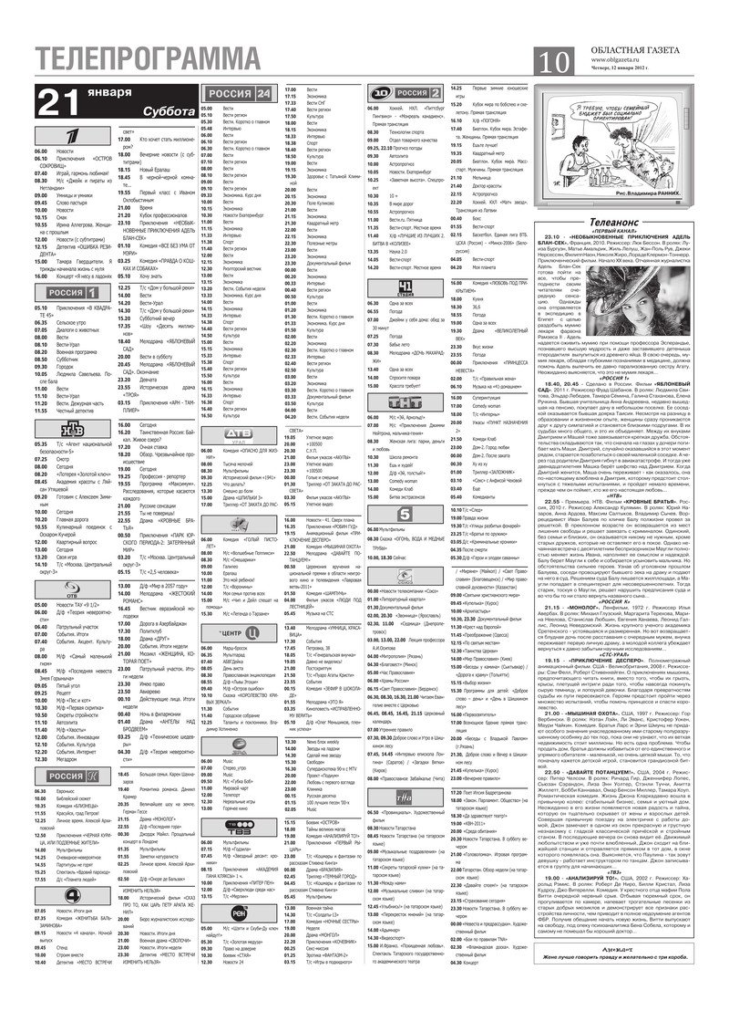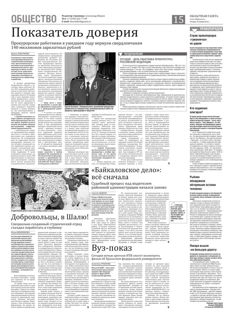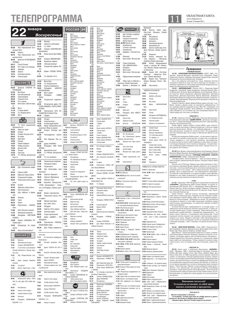 «Областная газета» № 3–4 (6059–6060) от 12 января 2012 года