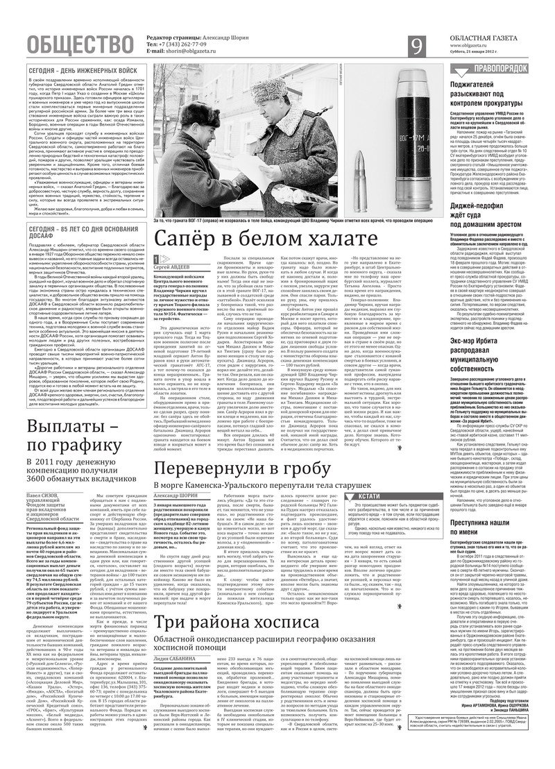 «Областная газета» № 20–21 (6075–6076) от 21 января 2012 года