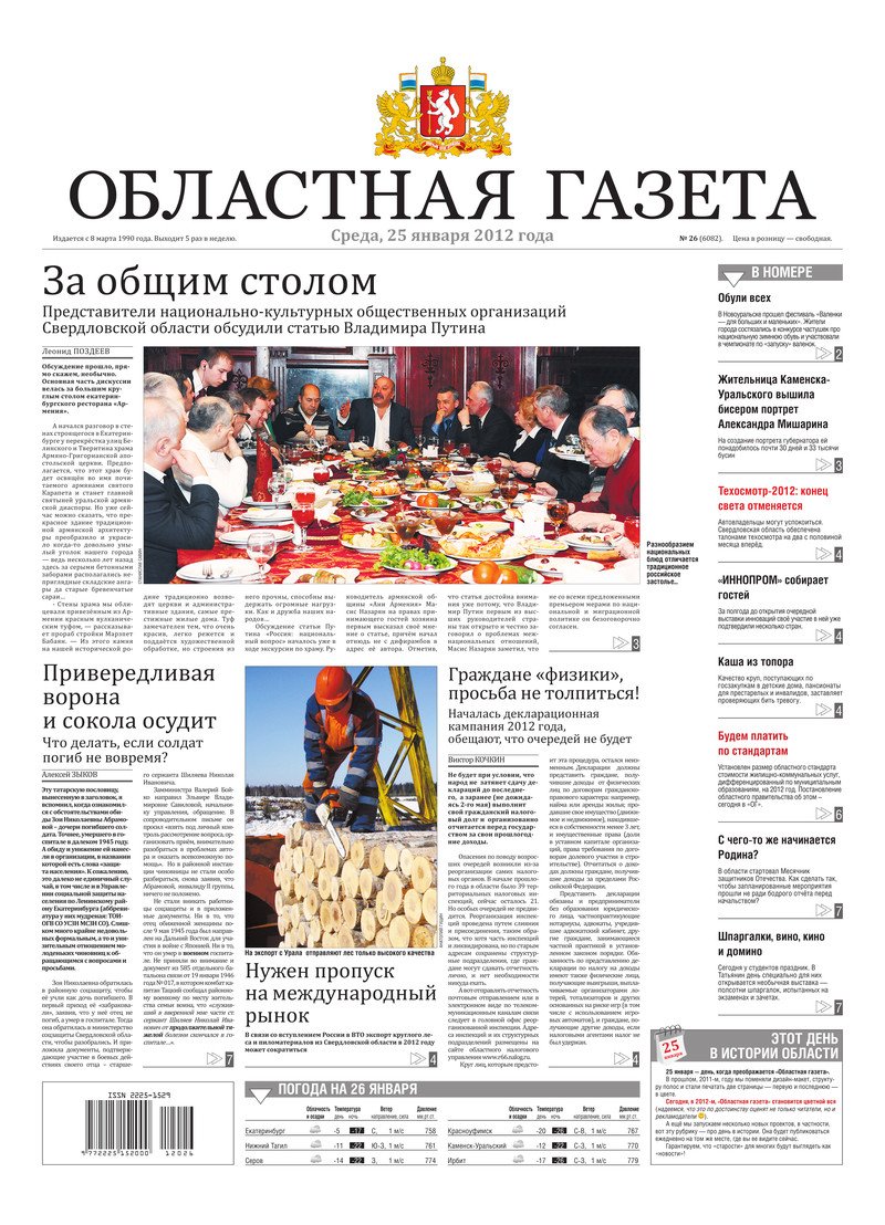 «Областная газета» № 26 (6082) от 25 января 2012 года
