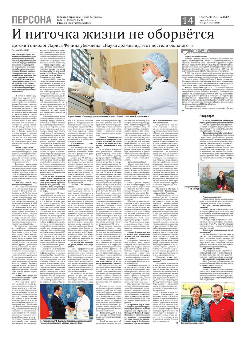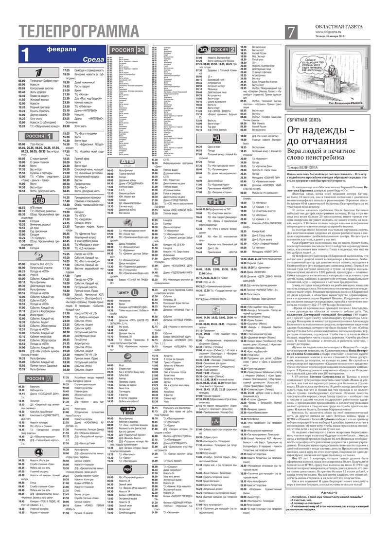 «Областная газета» № 27–28 (6083–6084) от 26 января 2012 года