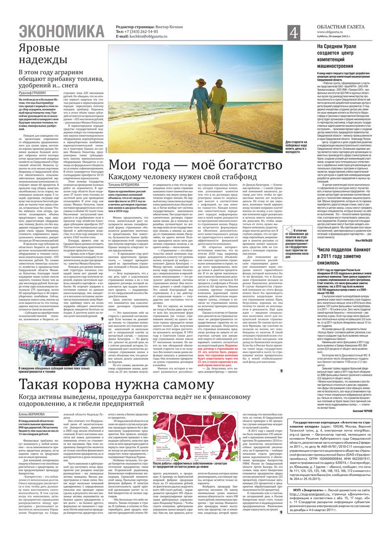 «Областная газета» № 32–35 (6088–6091) от 28 января 2012 года