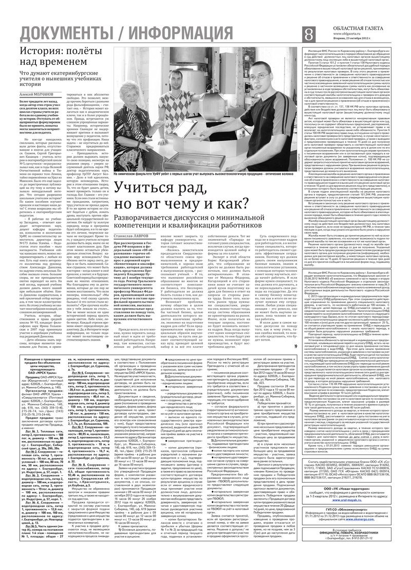 «Областная газета» № 422–423 (6478–6479) от 23 октября 2012 года