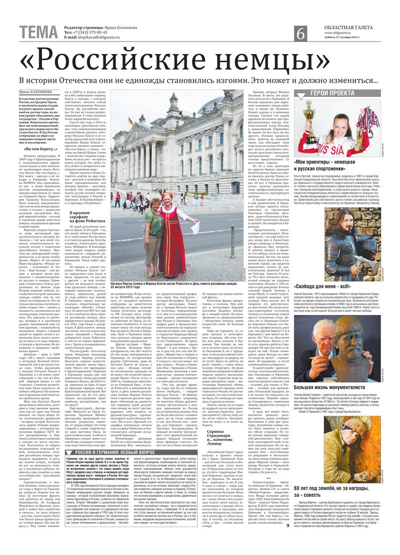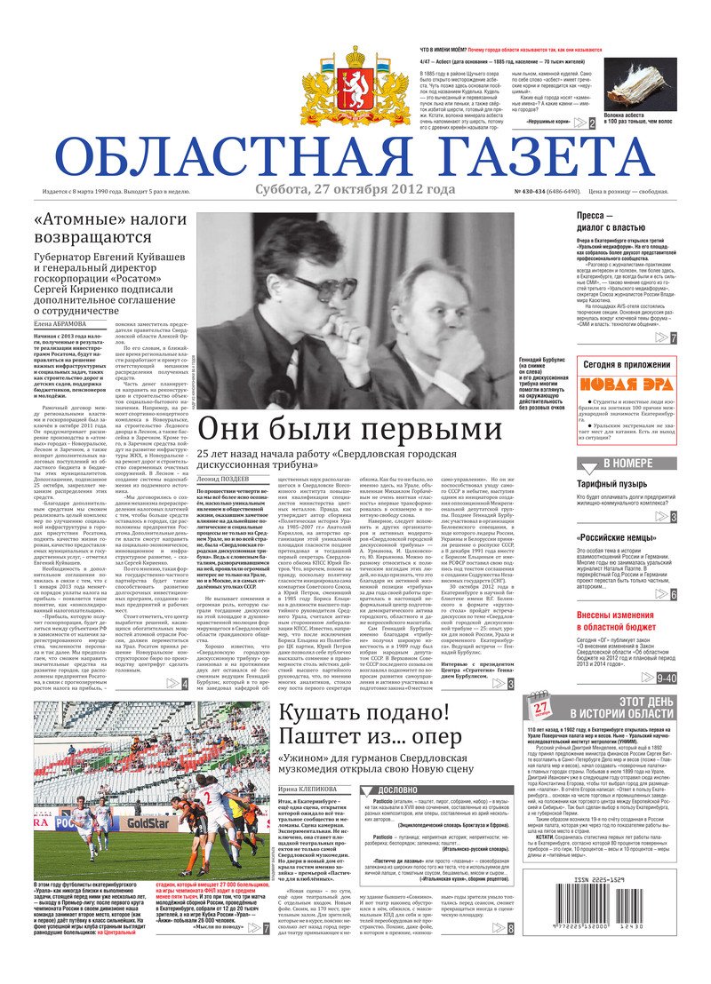 «Областная газета» № 430–434 (6486–6490) от 27 октября 2012 года