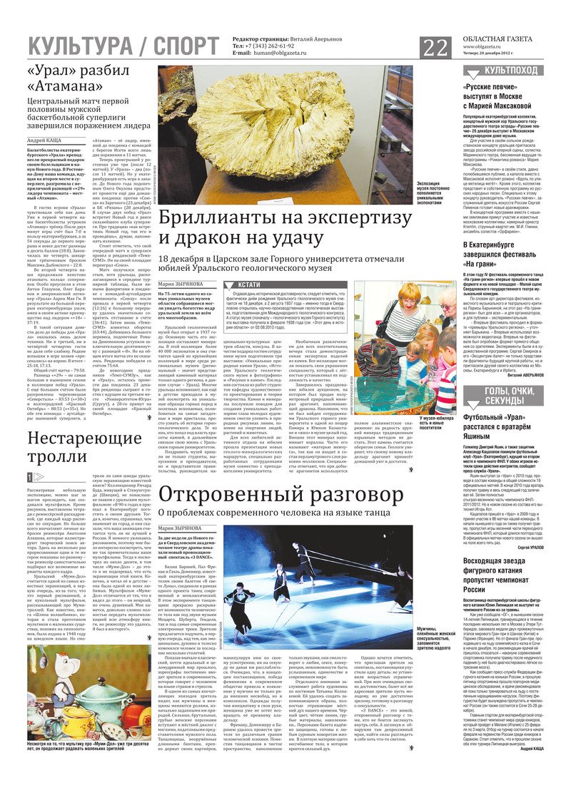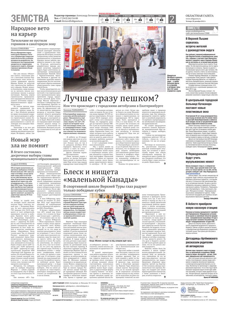 «Областная газета» № 568–571 (6624–6627) от 20 декабря 2012 года
