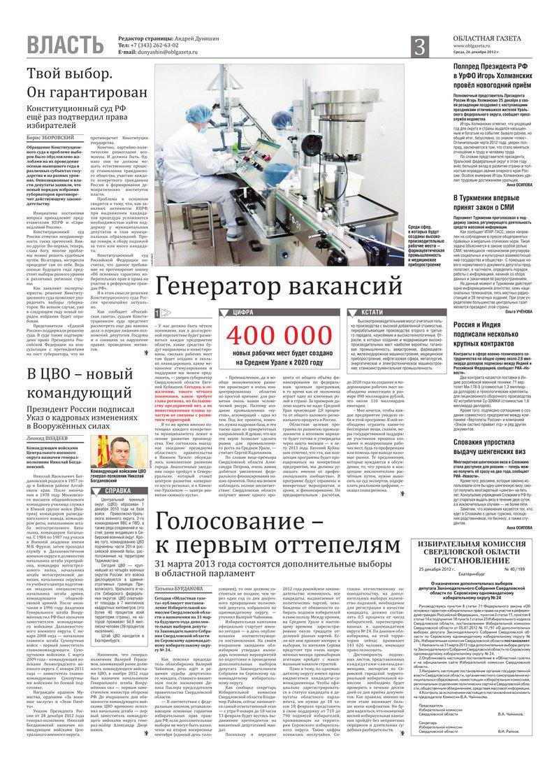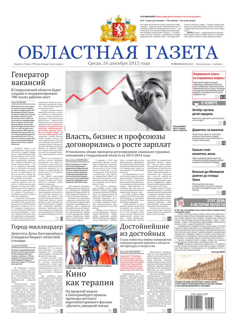 «Областная газета» № 582–585 (6638–6641) от 26 декабря 2012 года