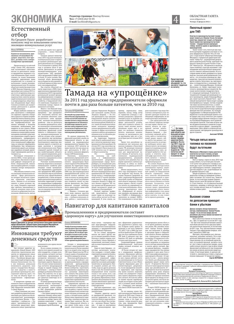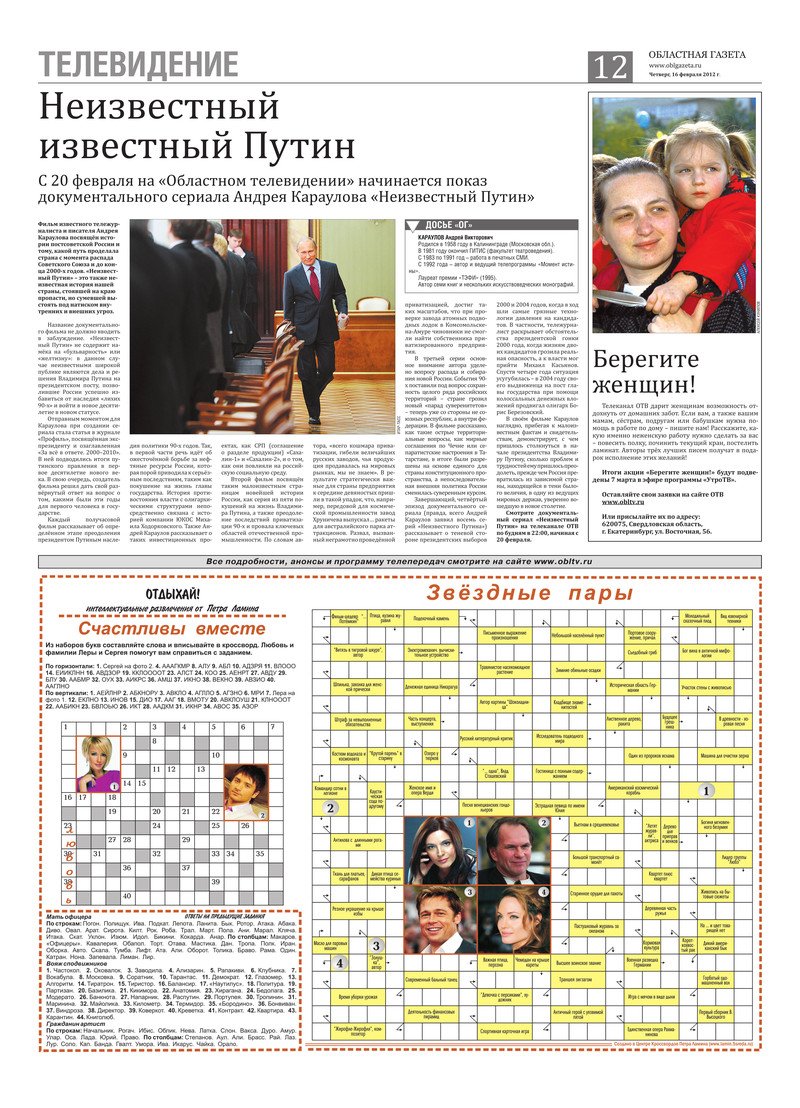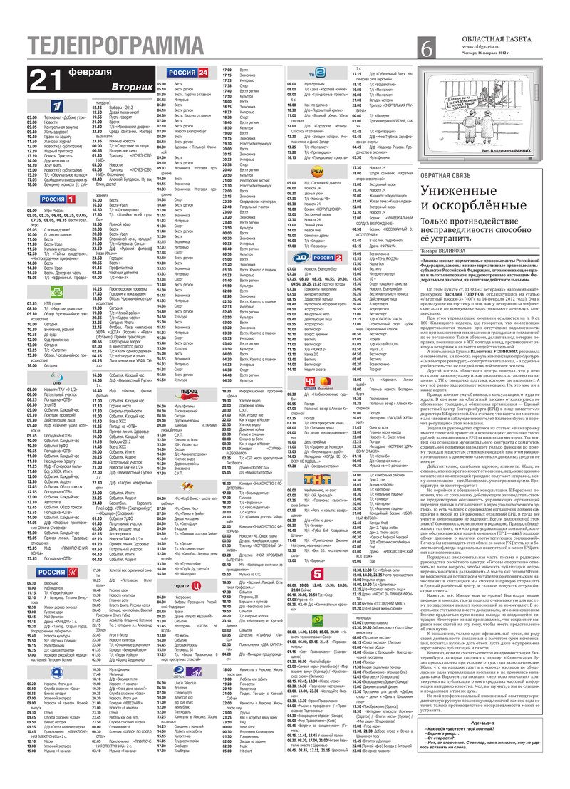 «Областная газета» № 61–62 (6117–6118) от 16 февраля 2012 года