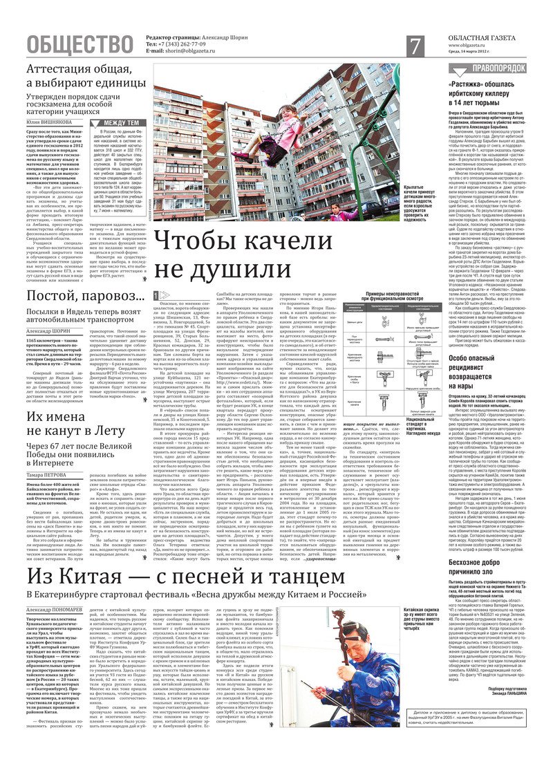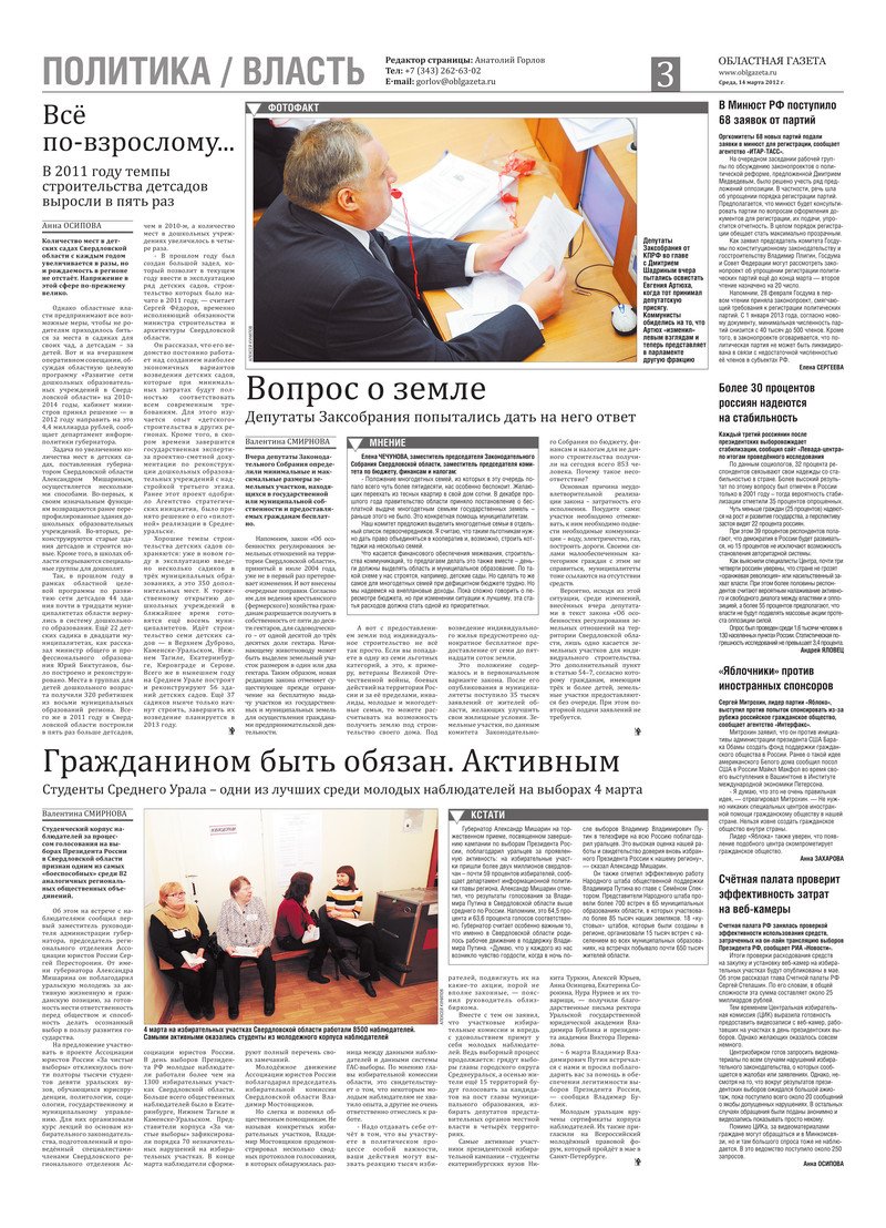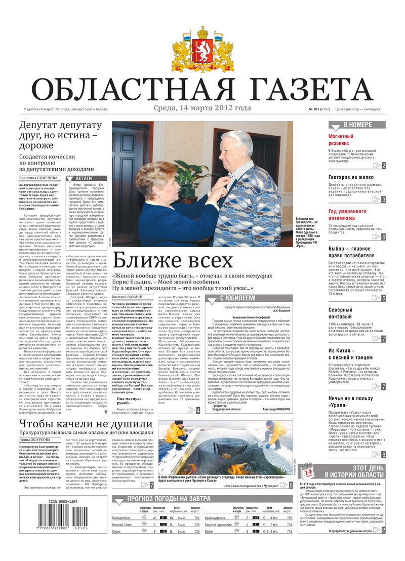 «Областная газета» № 101 (6157) от 14 марта 2012 года