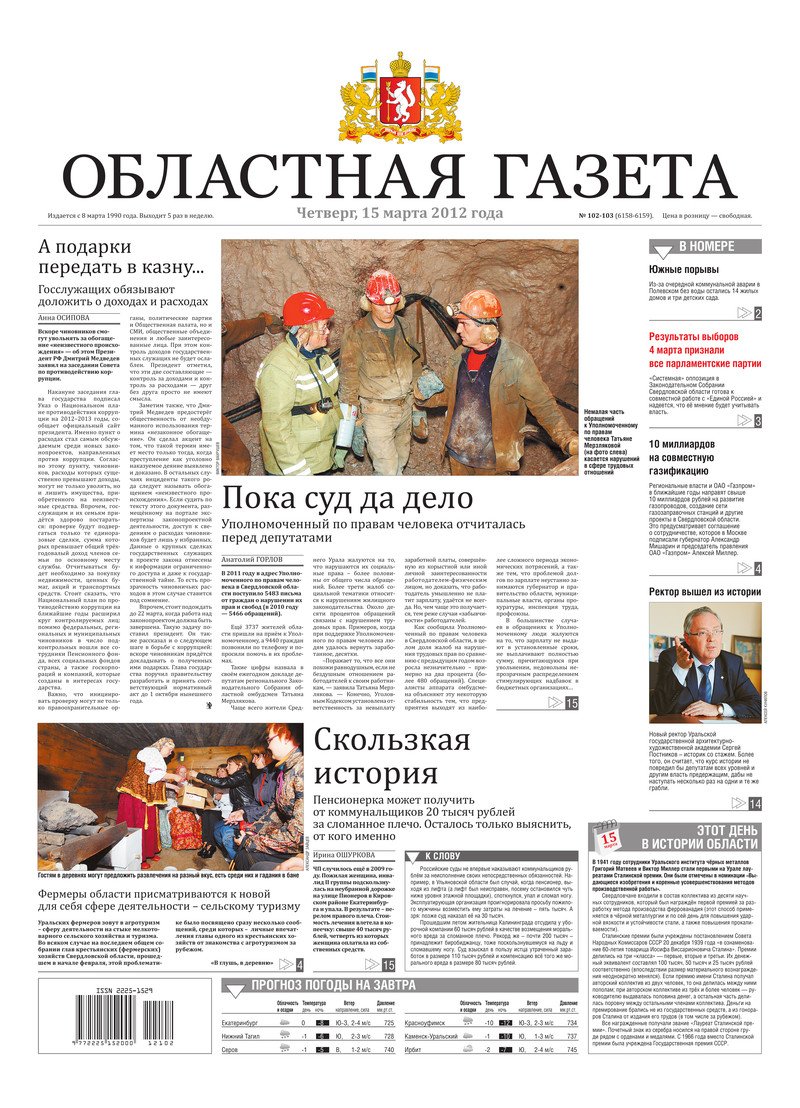 «Областная газета» № 102–103 (6158–6159) от 15 марта 2012 года