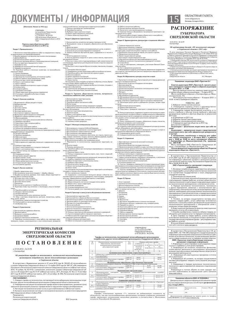 «Областная газета» № 104–106 (6160–6162) от 16 марта 2012 года