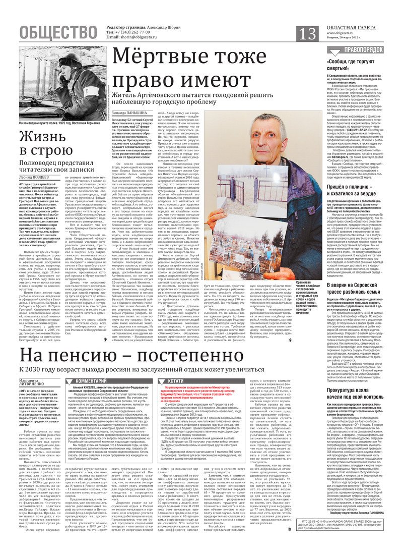 «Областная газета» № 111–112 (6167–6168) от 20 марта 2012 года