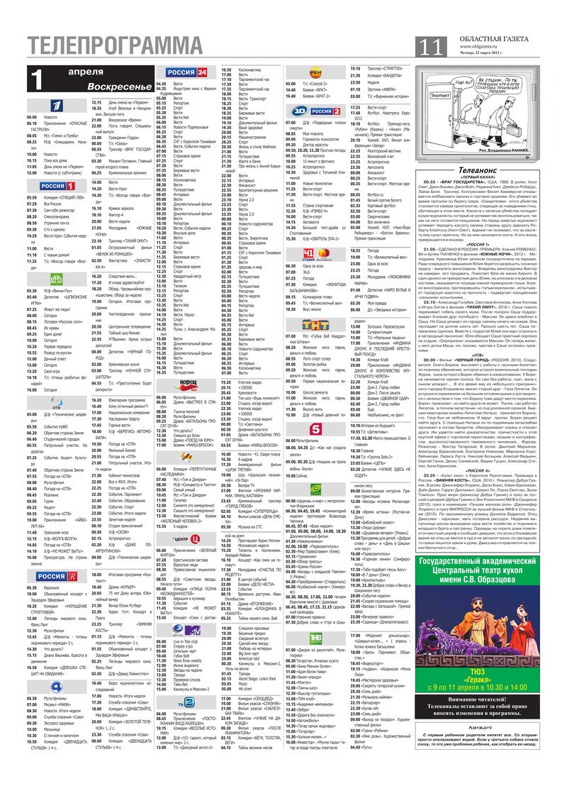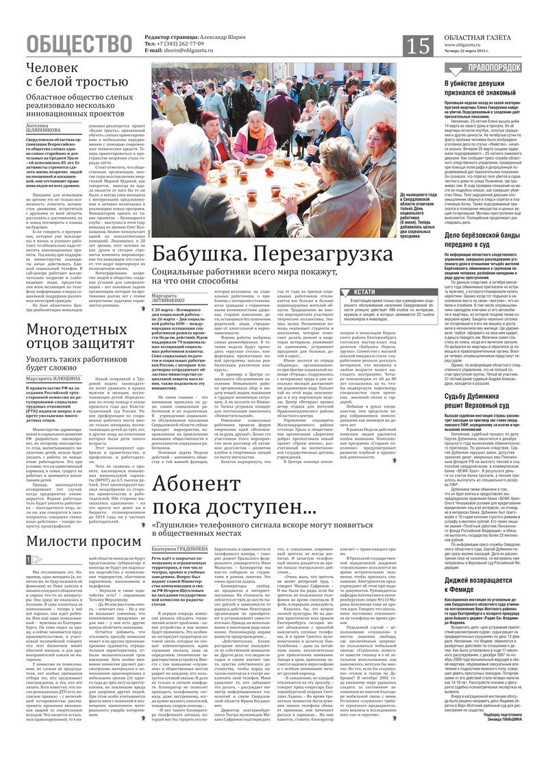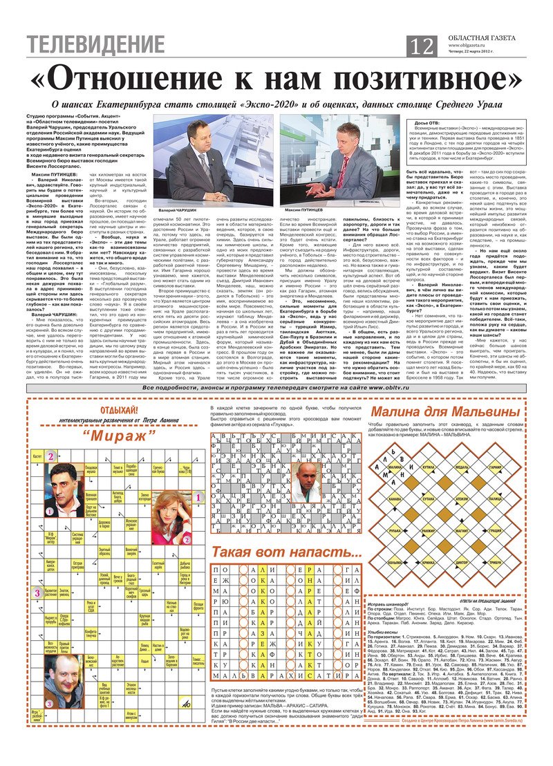 «Областная газета» № 115–116 (6171–6172) от 22 марта 2012 года