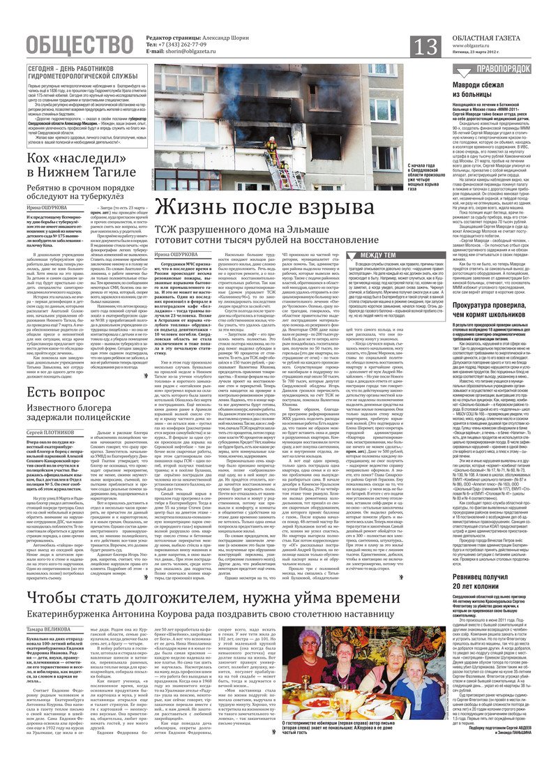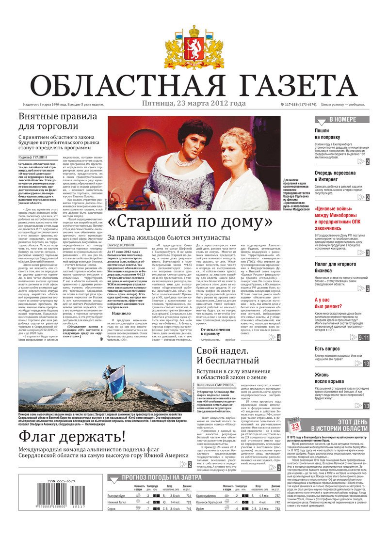 «Областная газета» № 117–118 (6173–6174) от 23 марта 2012 года