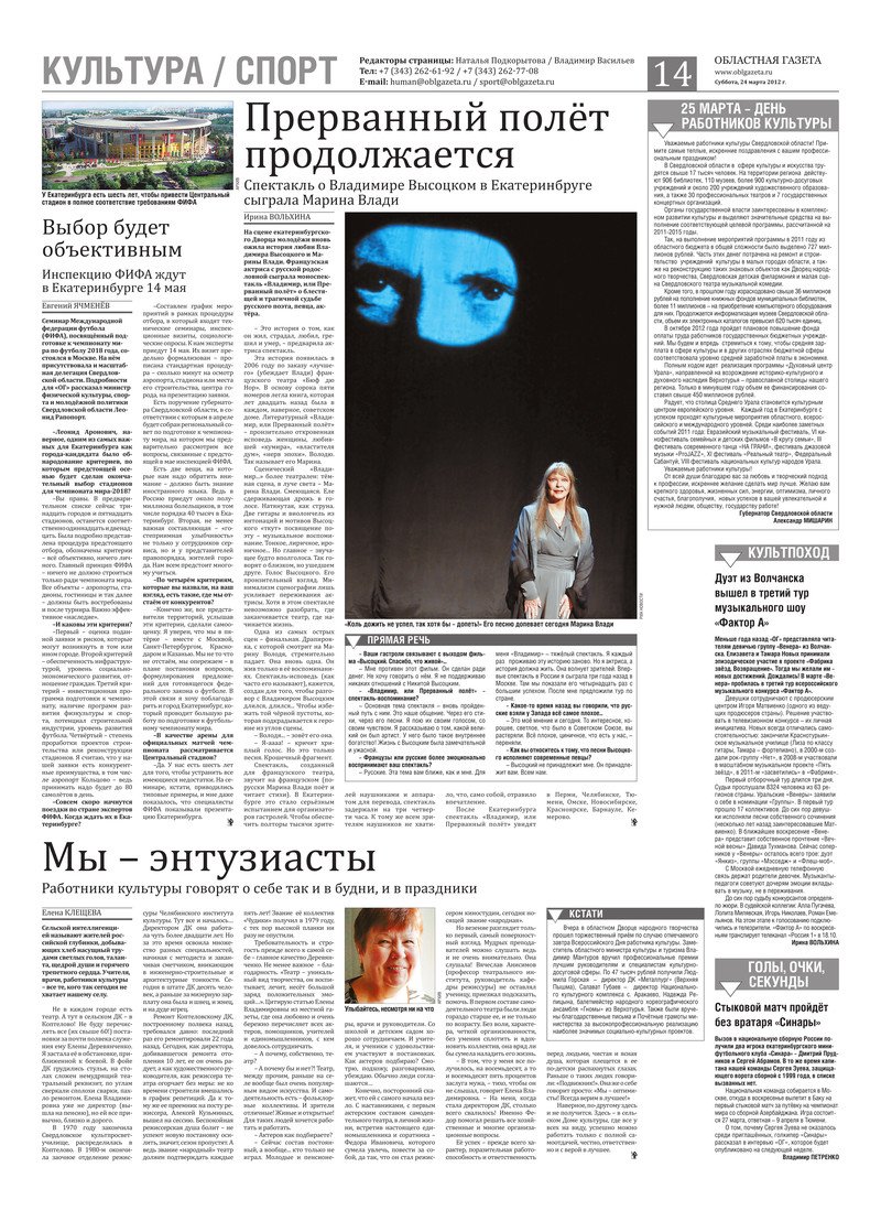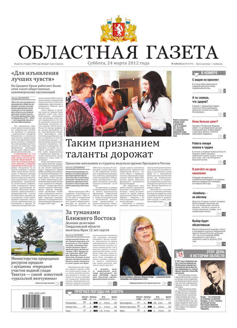 «Областная газета» № 120–121 (6176–6177) от 24 марта 2012 года