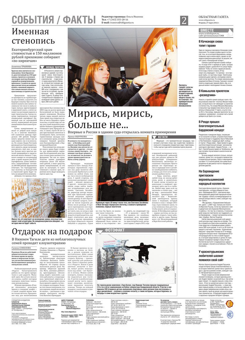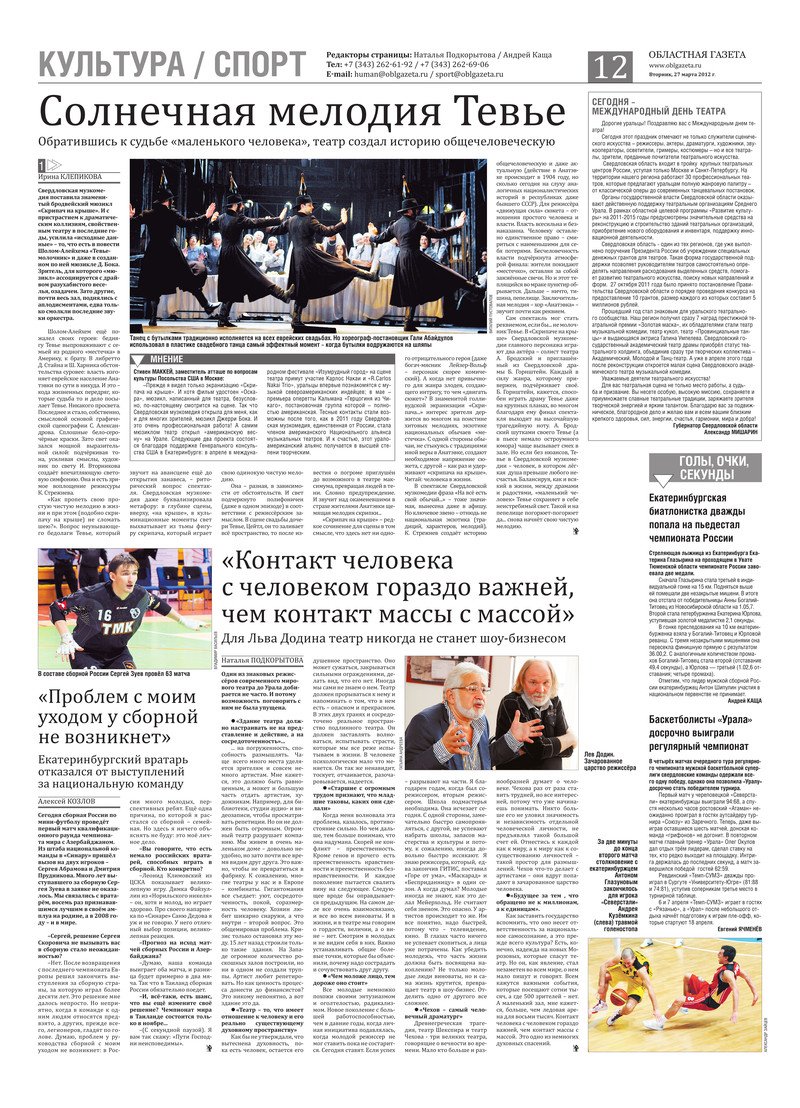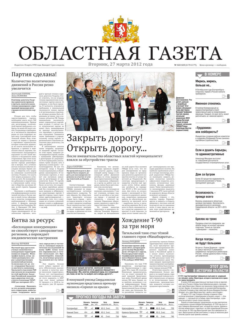 «Областная газета» № 122–123 (6178–6179) от 27 марта 2012 года