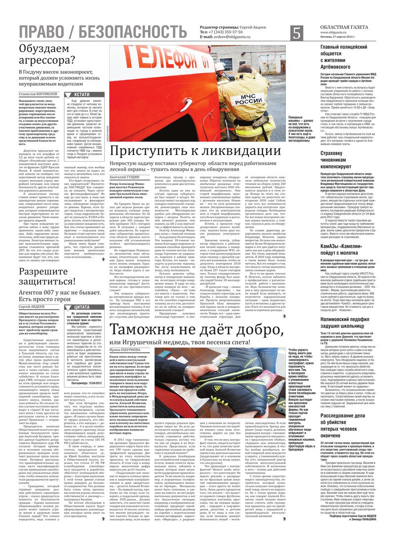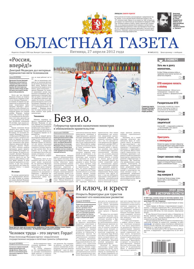 «Областная газета» № 165 (6221) от 27 апреля 2012 года