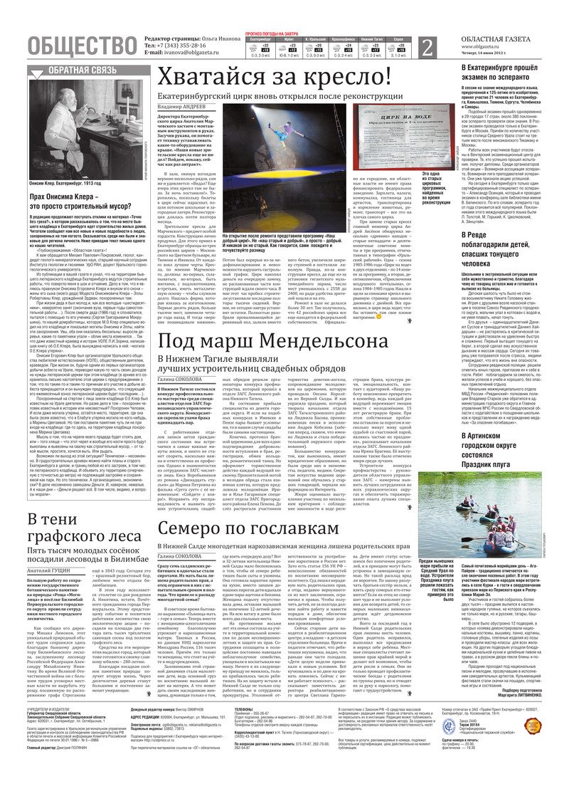 «Областная газета» № 221–222 (6277–6278) от 14 июня 2012 года