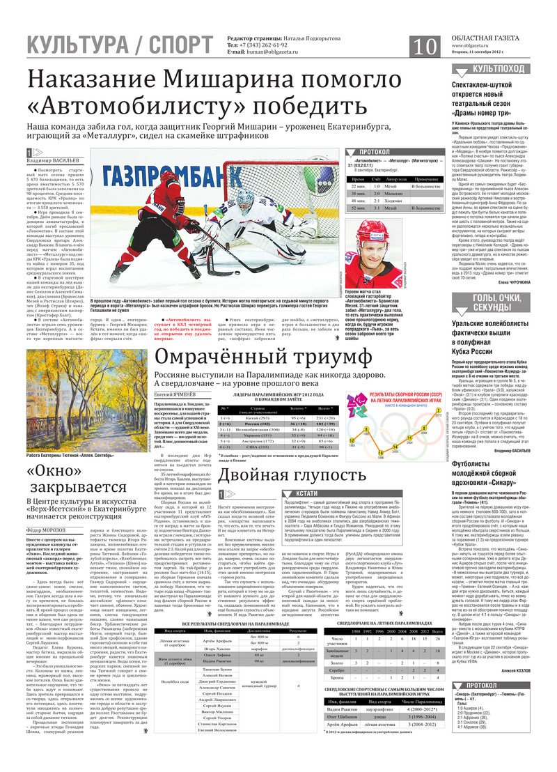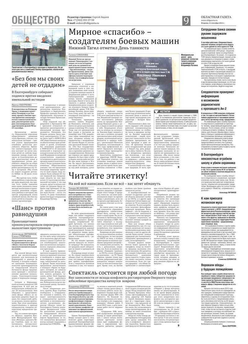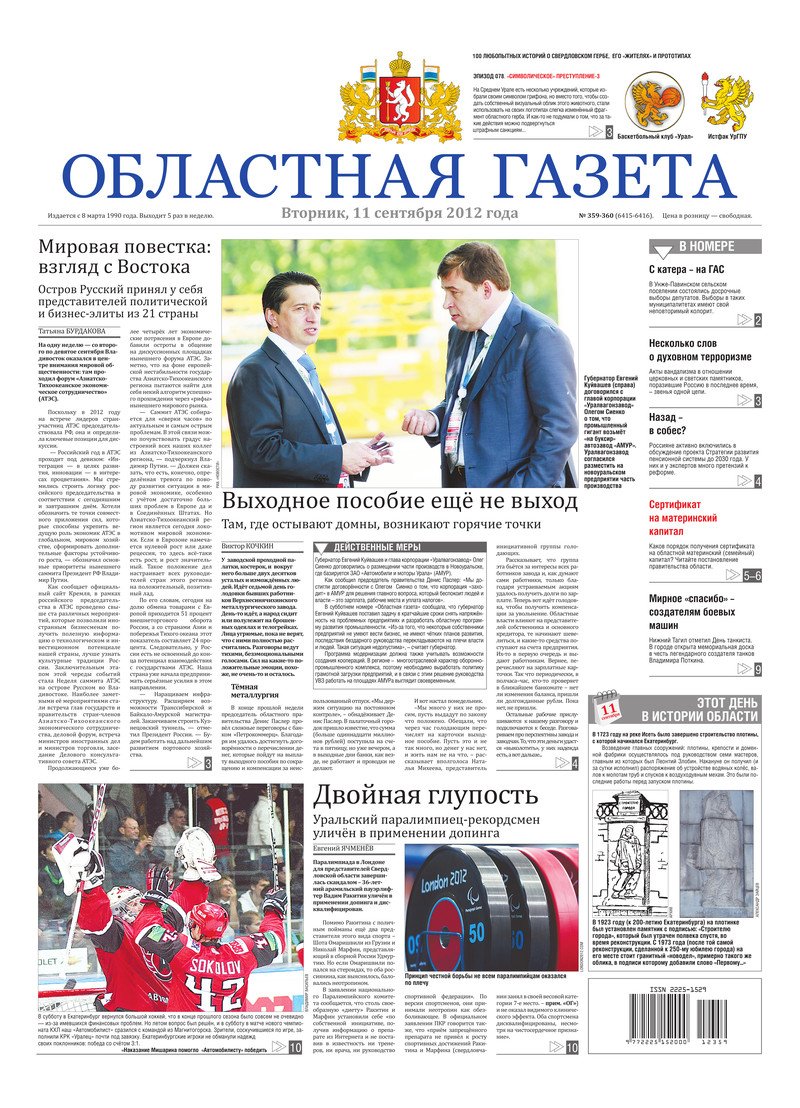 «Областная газета» № 359–360 (6415–6416) от 11 сентября 2012 года