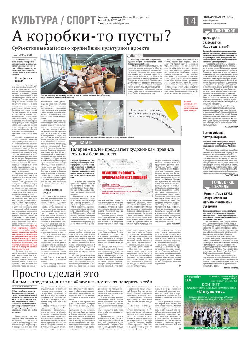 «Областная газета» № 364–365 (6420–6421) от 14 сентября 2012 года