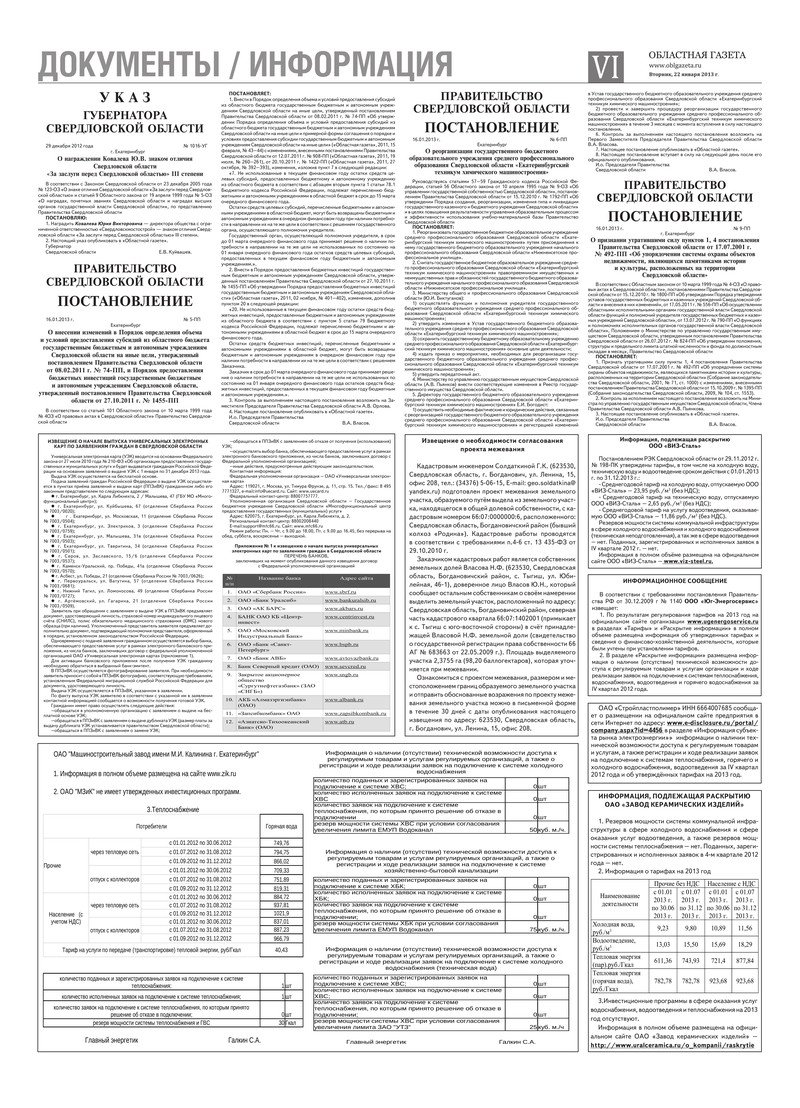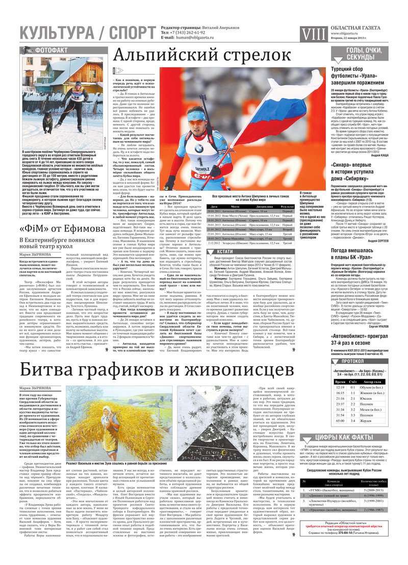 «Областная газета» № 26–27 (6684–6685) от 22 января 2013 года