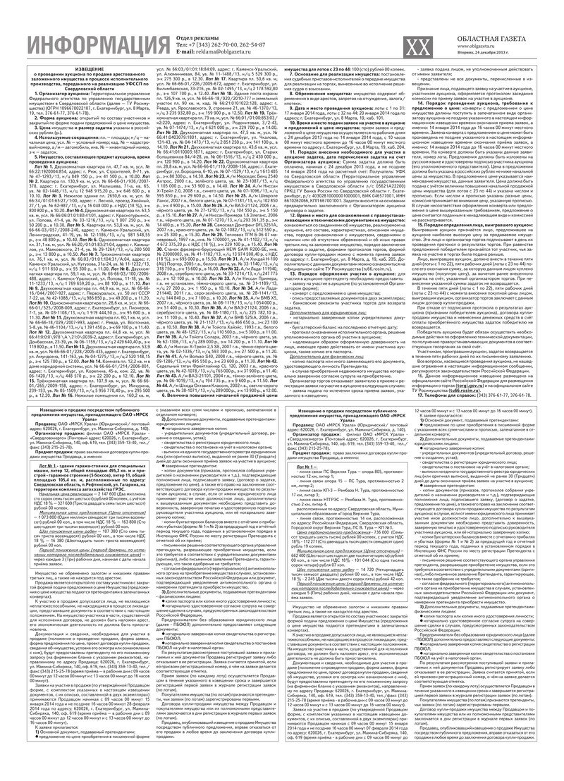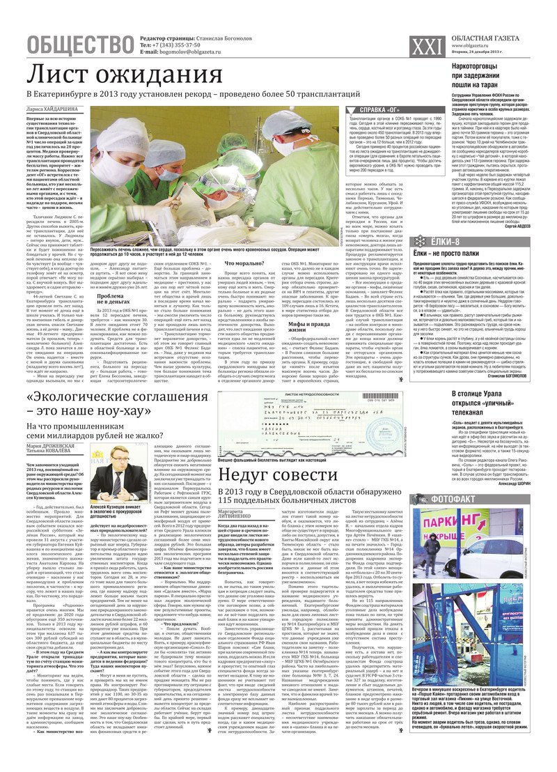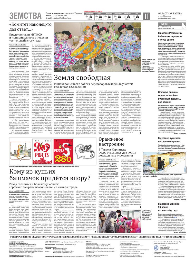 «Областная газета» № 638–641 (7296–7299) от 24 декабря 2013 года