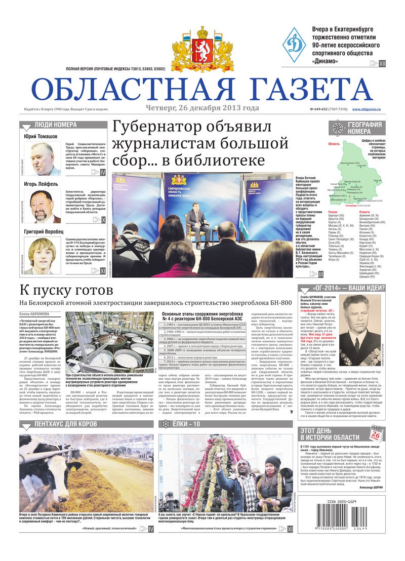 «Областная газета» № 649–652 (7307–7310) от 26 декабря 2013 года