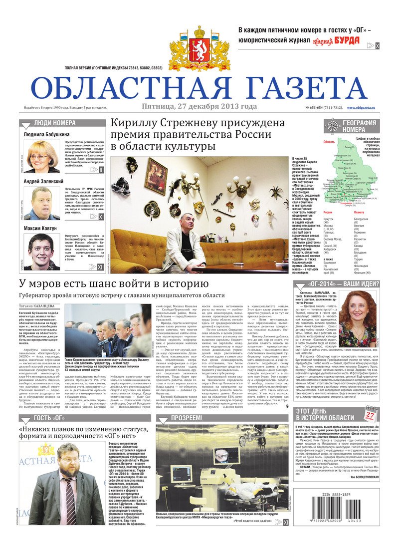«Областная газета» № 653–654 (7311–7312) от 27 декабря 2013 года
