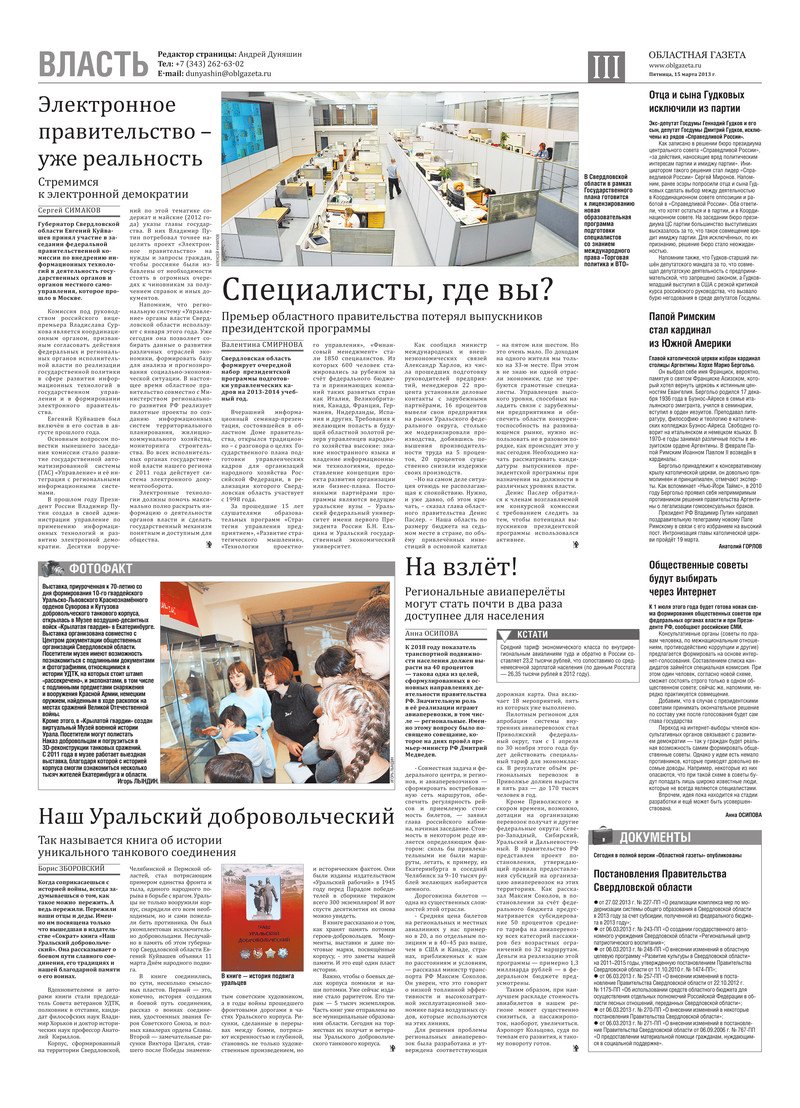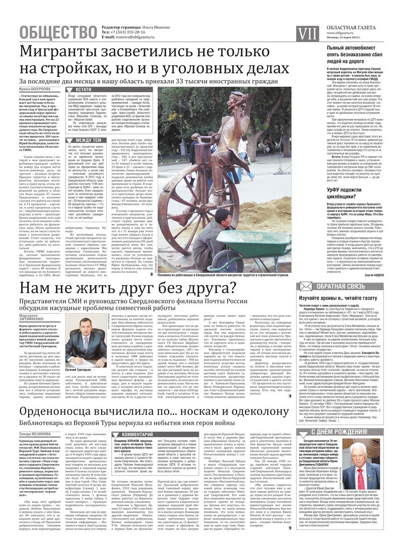 «Областная газета» № 120–122 (6778–6780) от 15 марта 2013 года
