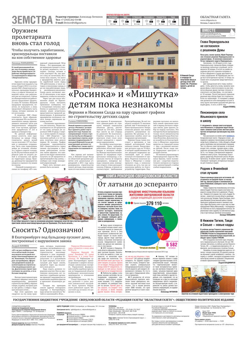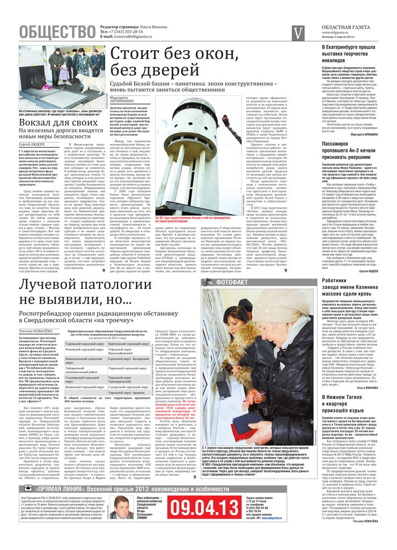«Областная газета» № 165 (6823) от 5 апреля 2013 года