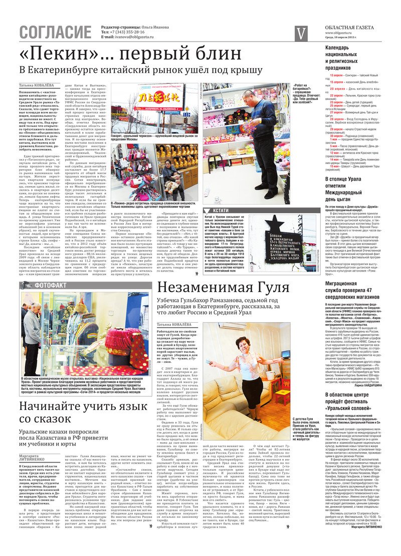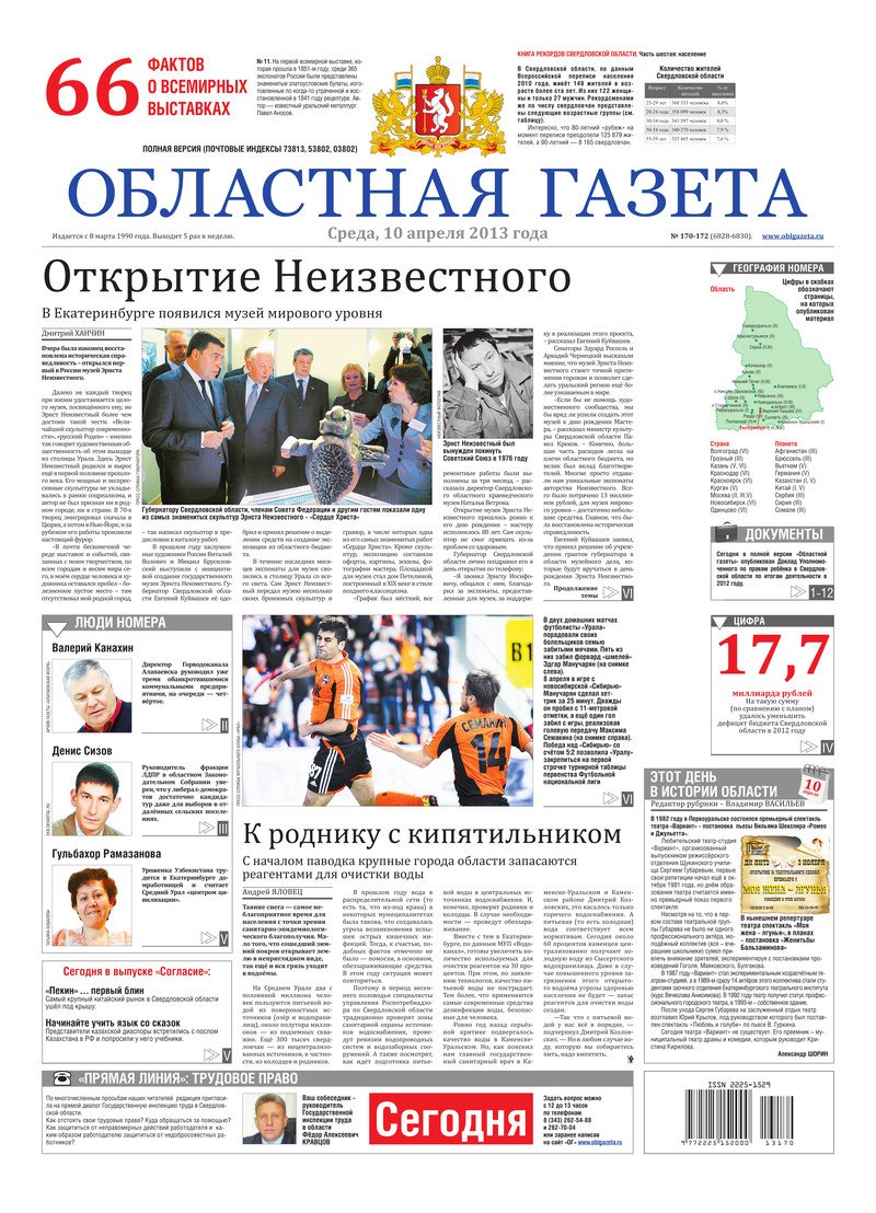 «Областная газета» № 170–172 (6828–6830) от 10 апреля 2013 года